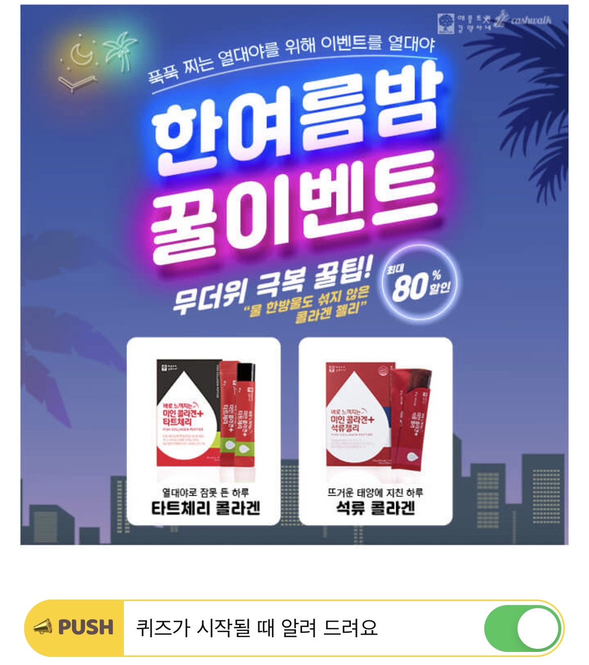 퀴즈풀고 캐시도 같이 적립해봐요.