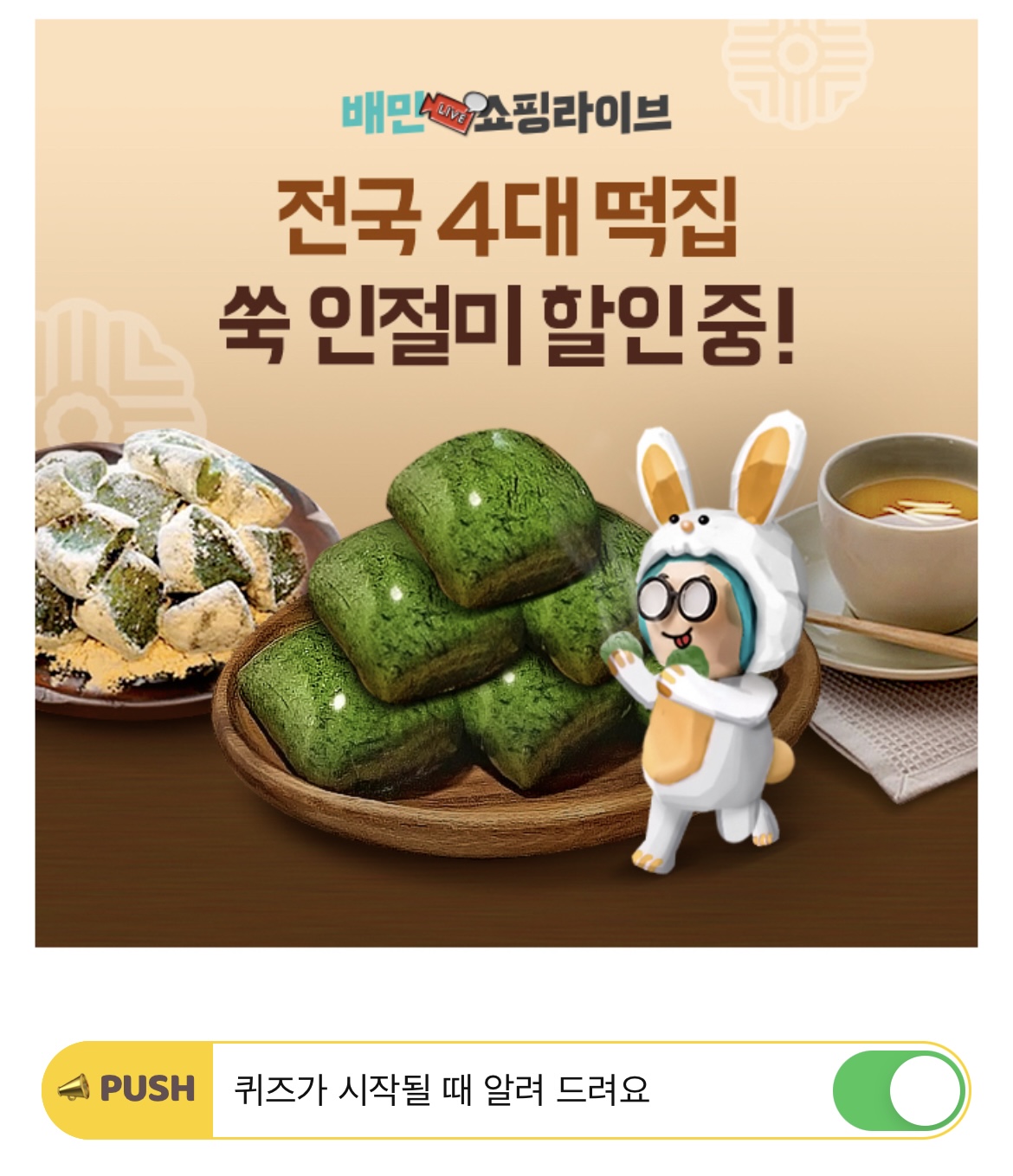 배민쇼핑라이브 쑥 인절미