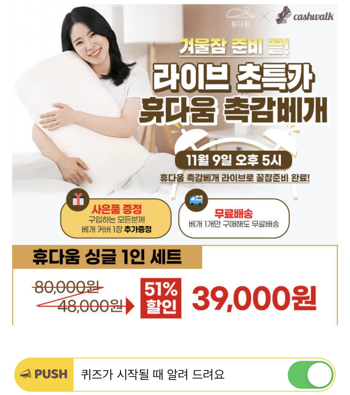퀴즈풀고 캐시도 같이 적립해봐요.
