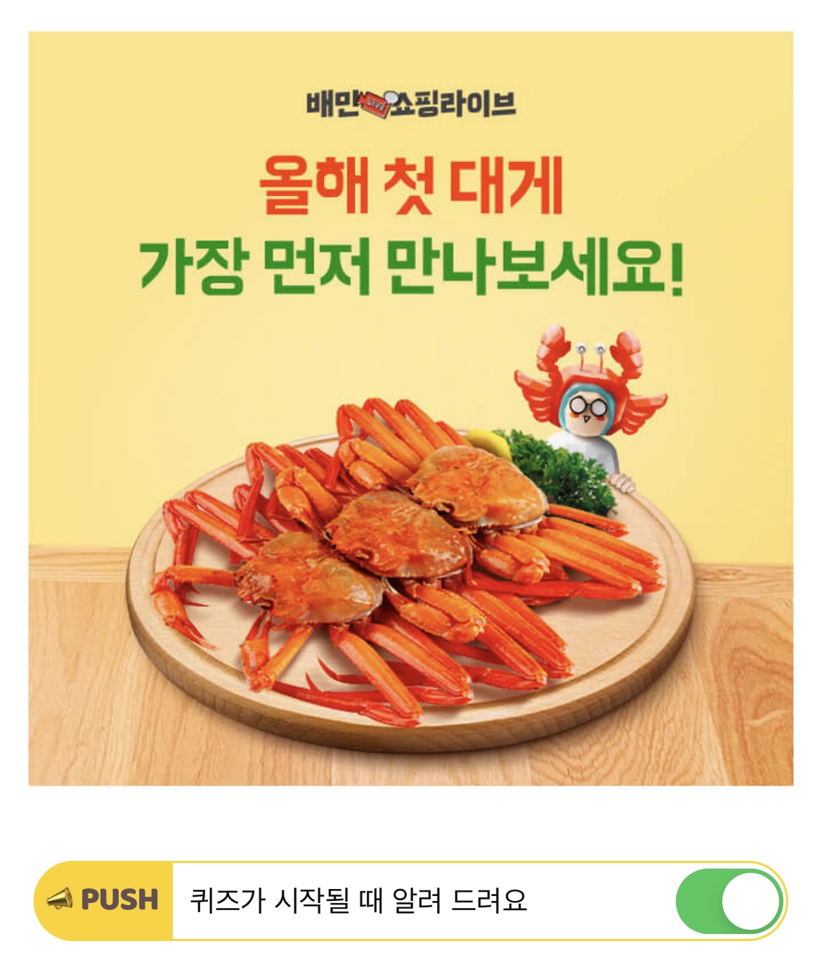 올해 첫 조업을 마친 따끈따끈한 대게가 찾아왔어요! OO대게를 가장 먼저 초특가로 만나볼 수 있는 기회! 놓치지 마세요. OO에 들어갈 말은 무엇일까요?