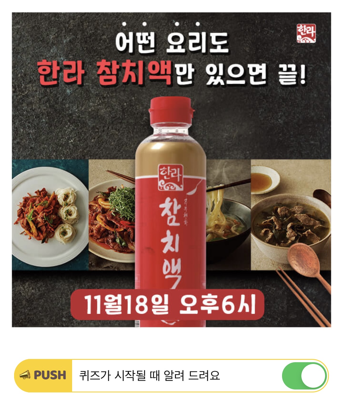 한라참치액 ㅇㅈㄹㅅㅍ 캐시워크/캐시닥 돈버는퀴즈 정답 11월18일 6시