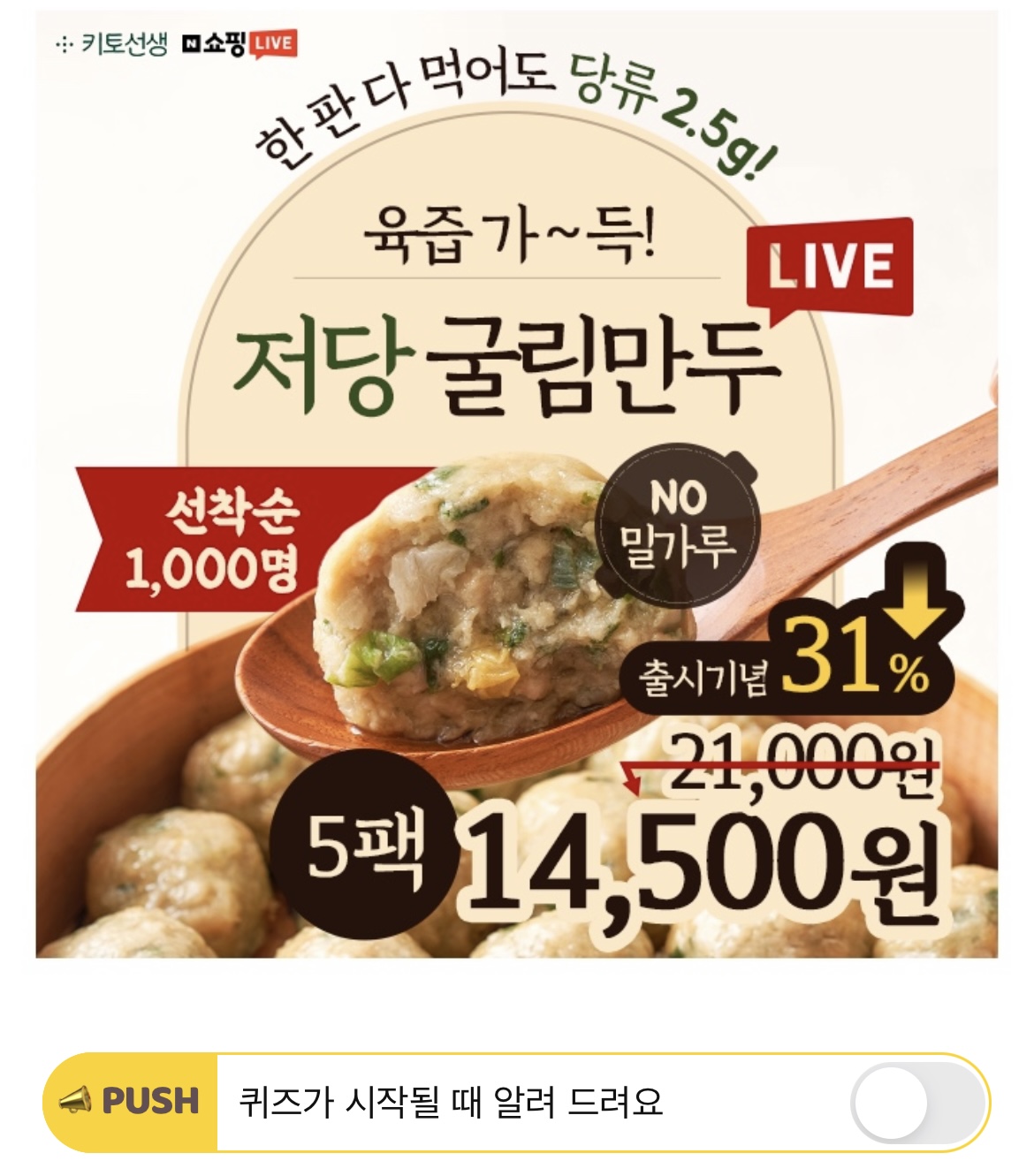 "일반 만두랑 맛은 똑같은데 야식으로 먹어도 다음날 안붓고 살이 안찌네요~", "그냥 만두보다 맛있는데 OOO나 당함량이 낮아 너무 좋아요!" 이 내용은 키토선생 저당굴림만두입니다. OOO에 들어갈 단어는 무엇일까요?