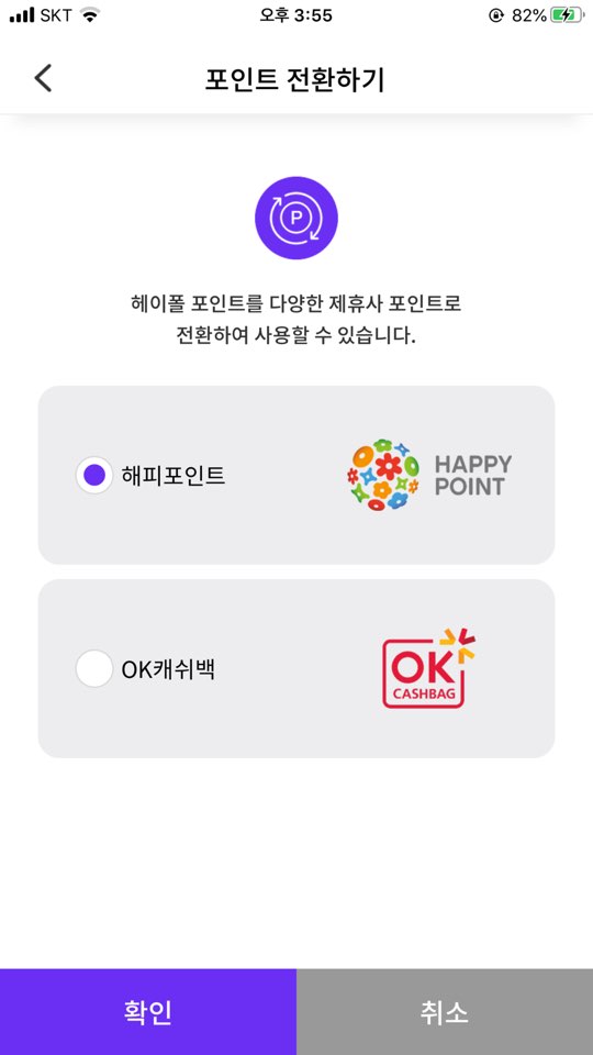 ok캐시 백와 해피포인트.