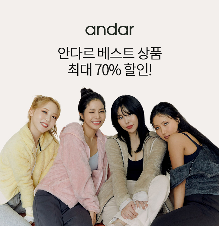 문제 : 지금 안다르에서 ○○○○룩부터 홈트용품까지 매일 달라지는 서프라이즈 혜택을 확인하세요!