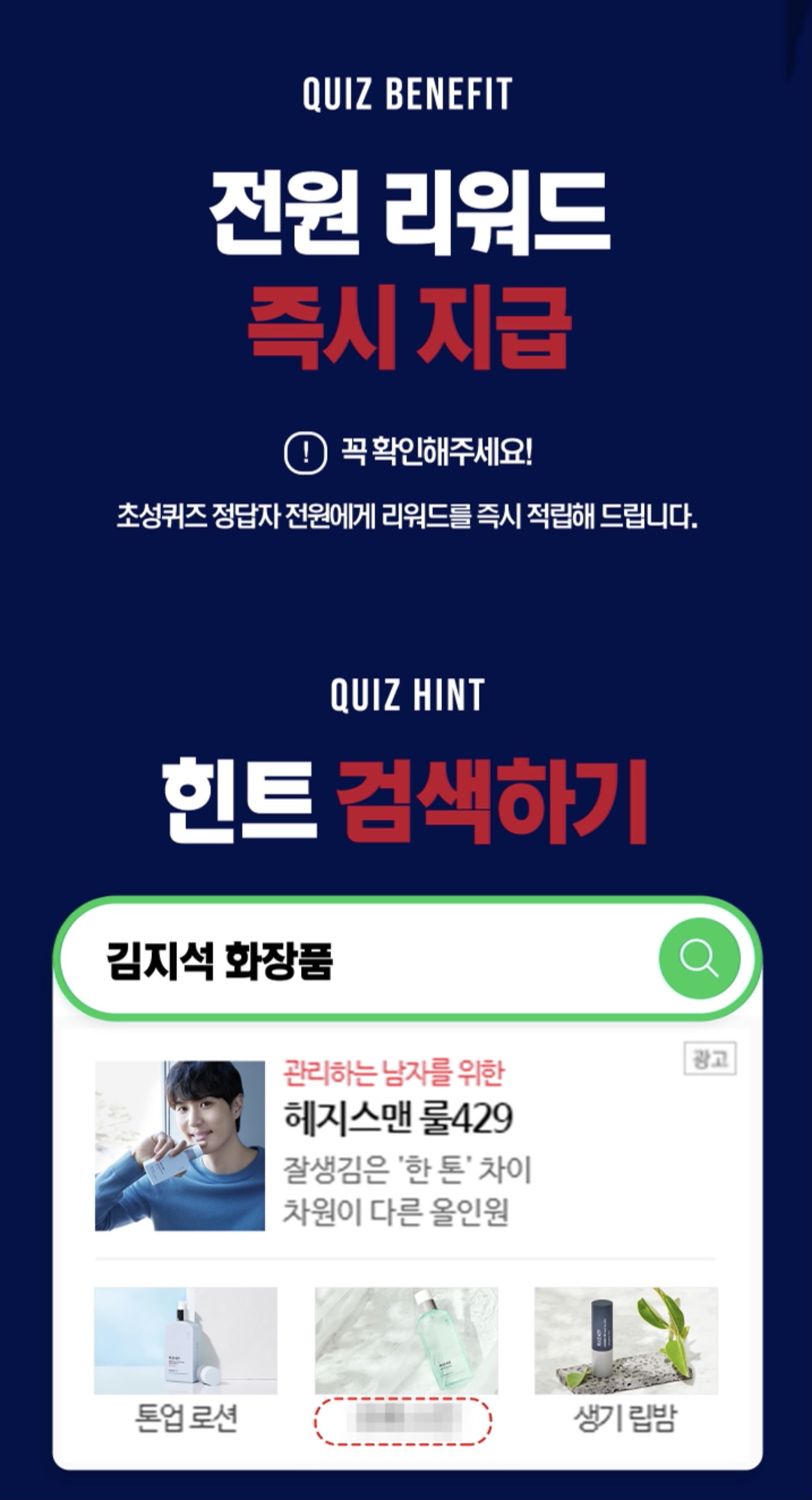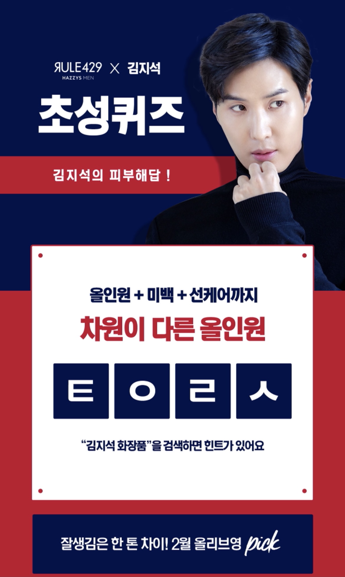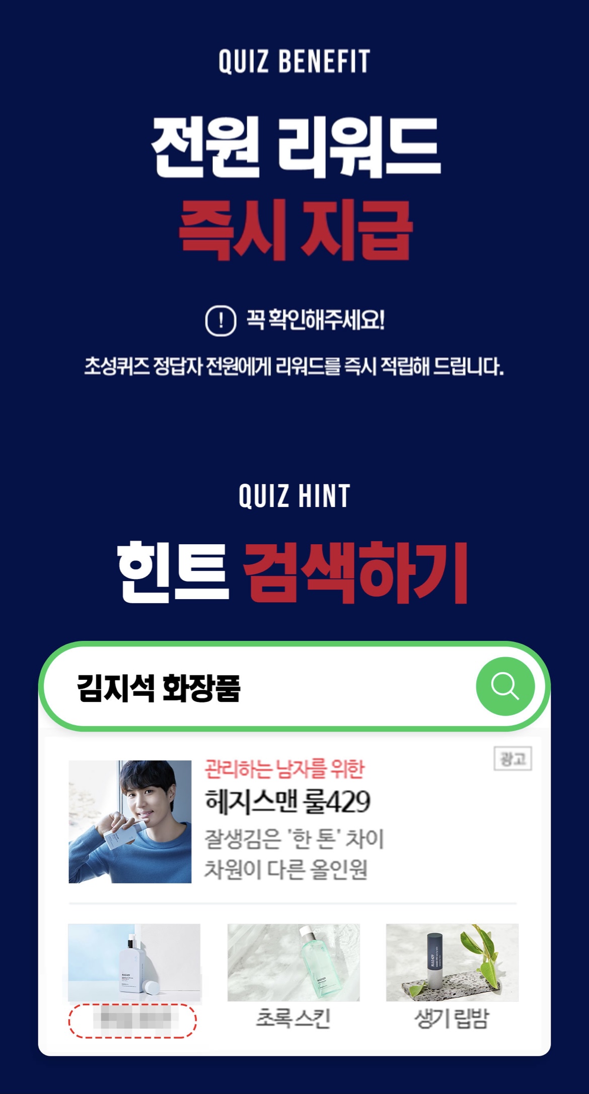 “김지석 화장품”을 검색하면 힌트가 있어요