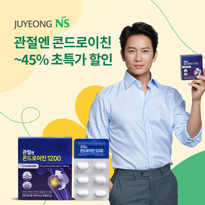 문제 : 배우 ㅈ ㅅ 이 선택한 관절엔 콘드로이친 1200은 대한민국 최초 콘드로이친 제품으로, 사람 연골과 구조가 동일한 소 연골의 콘드로이친만을 사용한 식약처에서 기능성을 인정받은 건강기능식품입니다.