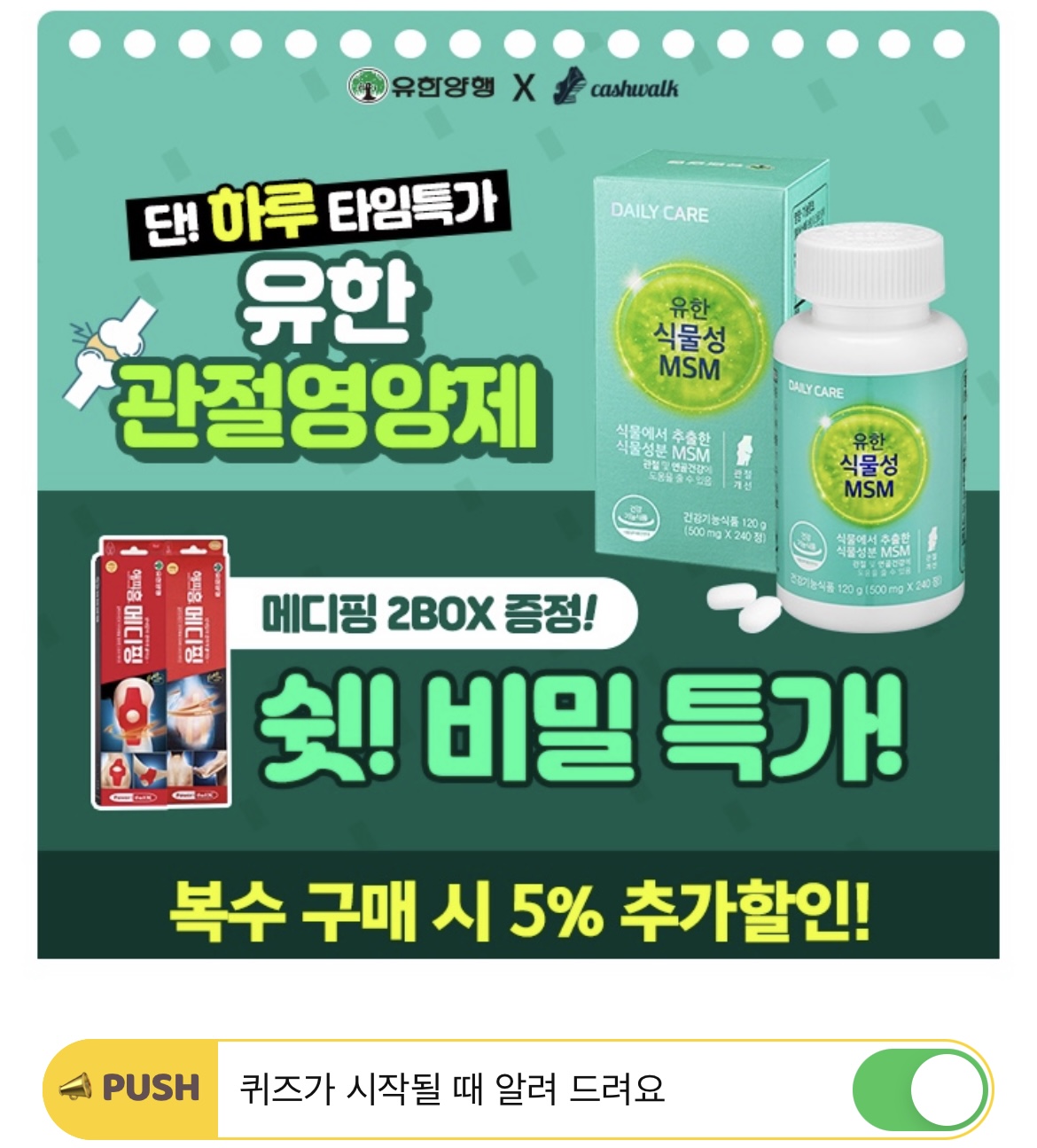 퀴즈풀고 캐시도 같이 적립해봐요.