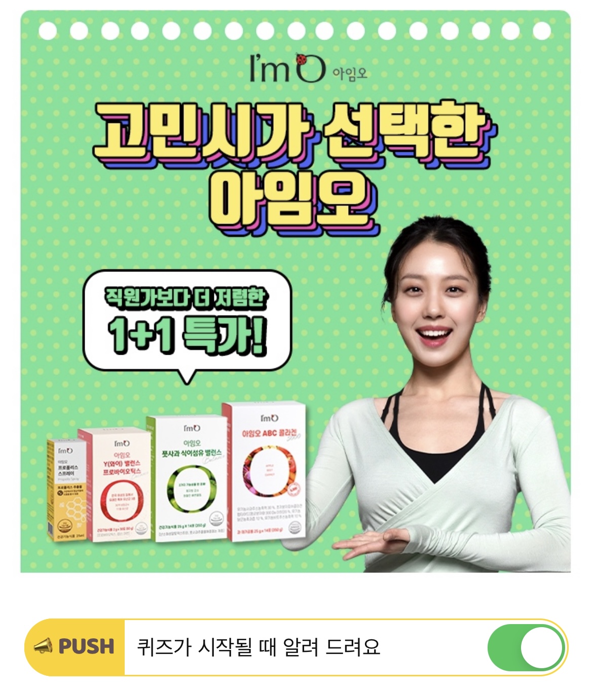 이번에 새롭게 출시한 아임오의 신제품 아임오 OOO식이섬유 밸런스는 체지방 감소와 원활한 배변활동을 도울 수 있는 2가지 기능성을 가진 건강기능식품 입니다. OOO은 무엇일까요?