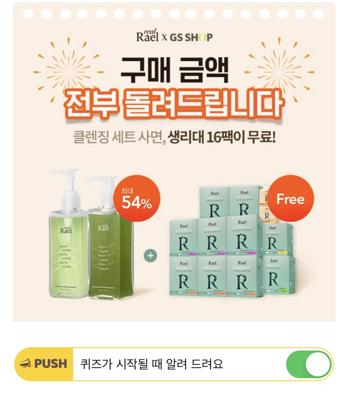 GS SHOP에서 5월 25일까지 진행되는 리얼라엘 이벤트는 OOO클렌저와 오일투폼클렌저의 구성으로 100% 페이백 이벤트를 진행합니다. 여기서 빈칸에 들어갈 단어는 무엇일까요? (초성힌트 : ㄷㄱㄹ)