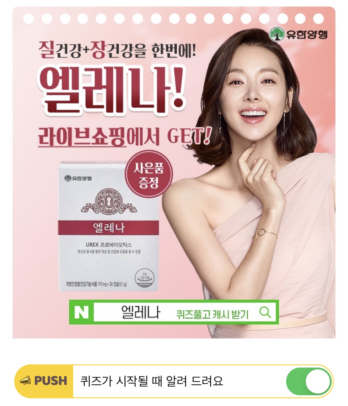 여성의 장건강과 질 건강을 책임지는 OOO프리오 바이오틱스 엘레나! 프리미엄 멀티유산균! 유한양행 엘레나로 장건강 질건강 챙기시고 사은품과 추가 할인까지 ! OOO에 들어갈 단어는 무엇일까요?