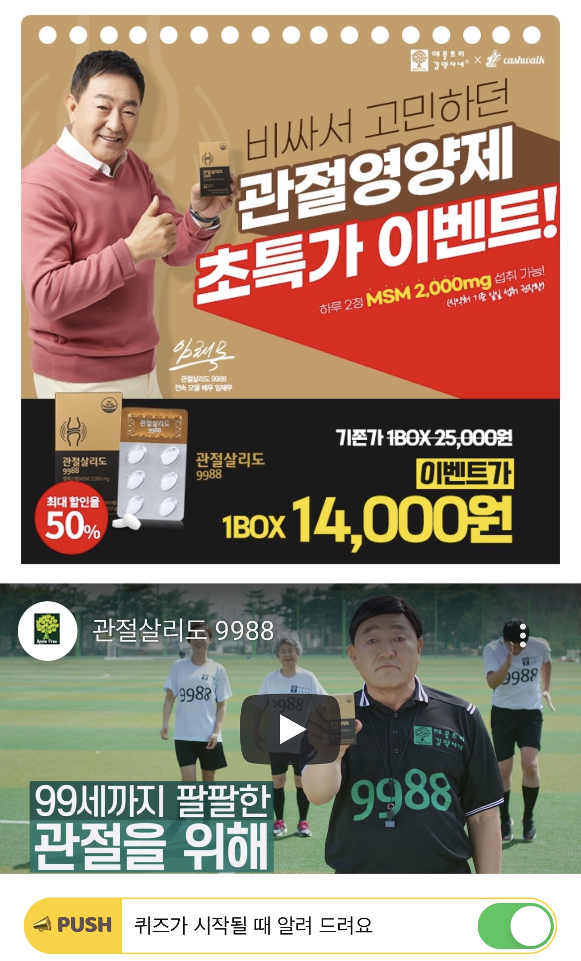 퀴즈풀고 캐시도 같이 적립해봐요.
