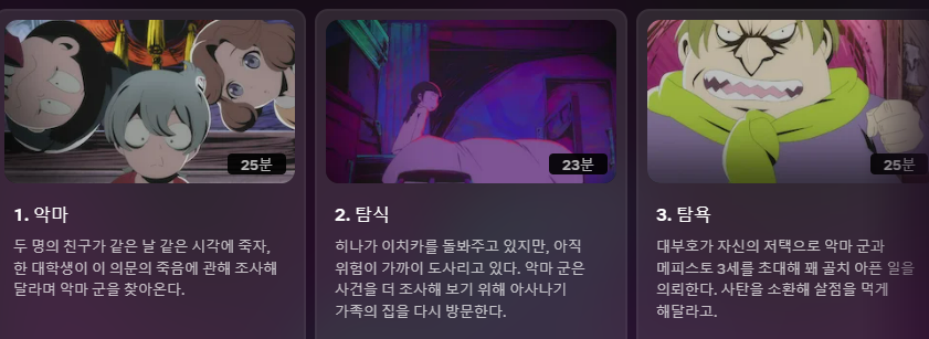 미스테리 추리물 좋아하면 주말에 간편하게 볼 수 있는 애니메이션일 것 같다.