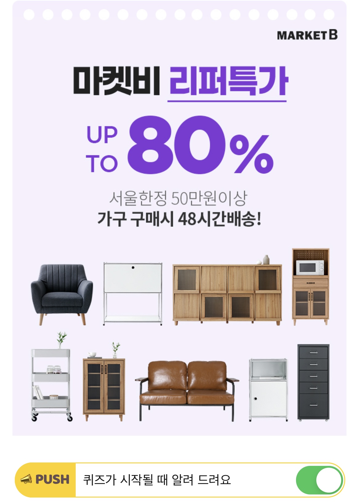 스마트 쇼퍼들은 다 아는 마켓비 OOOOO! 신상·인기 가구와 소품을 최대 80% 할인된