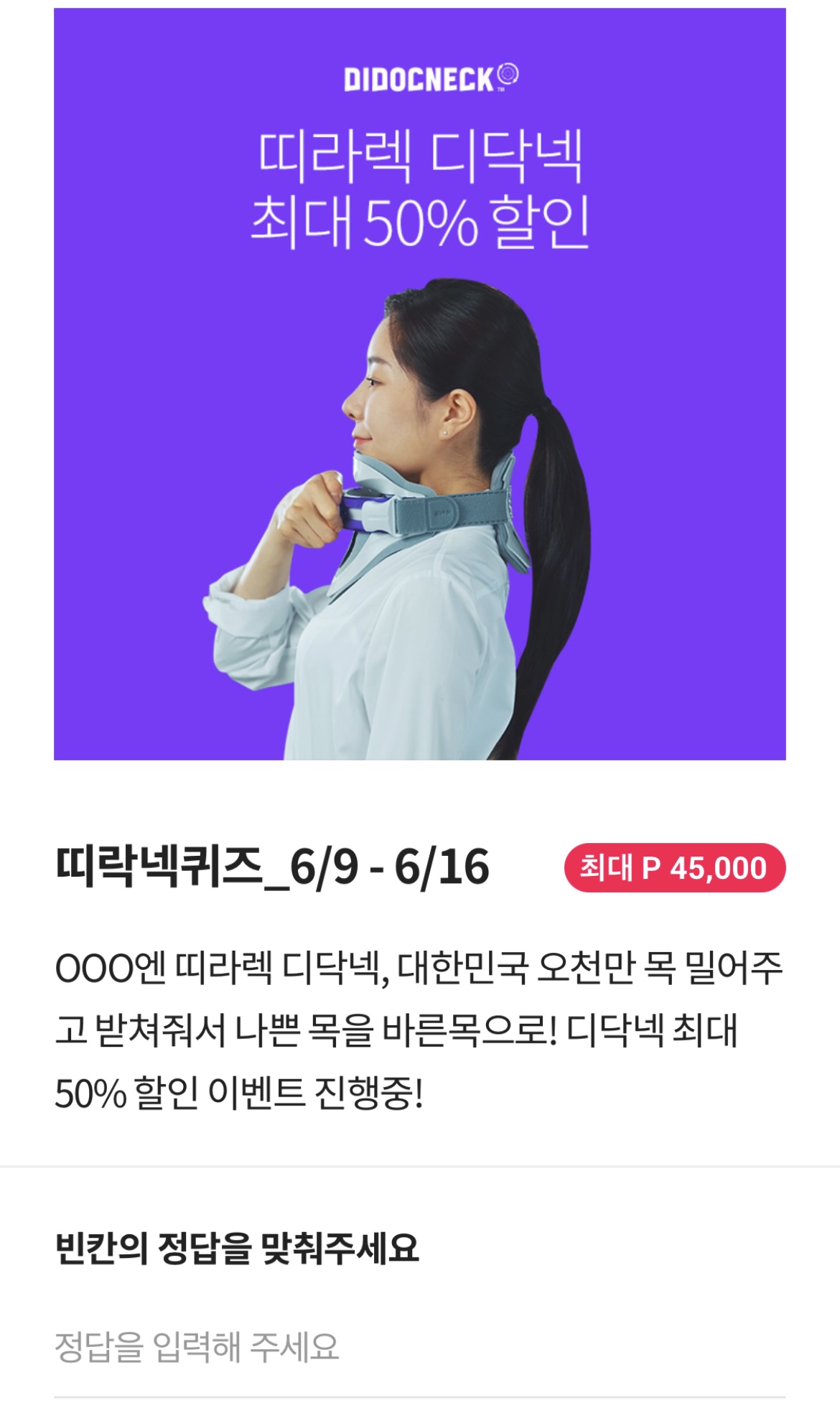 OOO엔 띠라렉 디닥넥, 대한민국 오천만 목 밀어주고 받쳐줘거 나쁜 목을 바른목으로! 디닥넥 최대 50% 할인 이벤트 진행중!