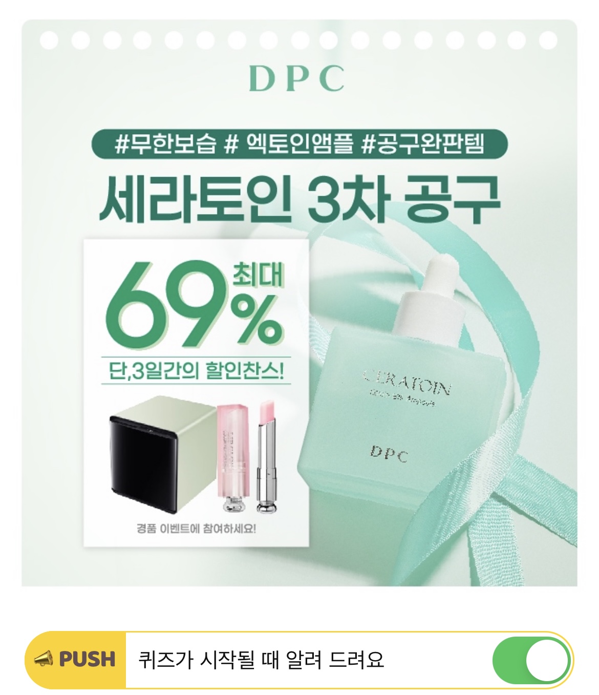 DPC 2021년 첫 신제품인, OOOO 엑토인 8% 앰플은 무한보습과 피부장벽강화 2중 보습방패 앰플입니다. 4주 사용으로 피부내 수분 함유량 93% 개선, 가려움증 82% 개선 효과로, 피부진정에도 효과적인 OOOO 앰플! 아이부터 어른까지 모두 사용가능한 이 제품의 이름은 무엇일까요? (초성힌트 : ㅅㄹㅌㅇ)
