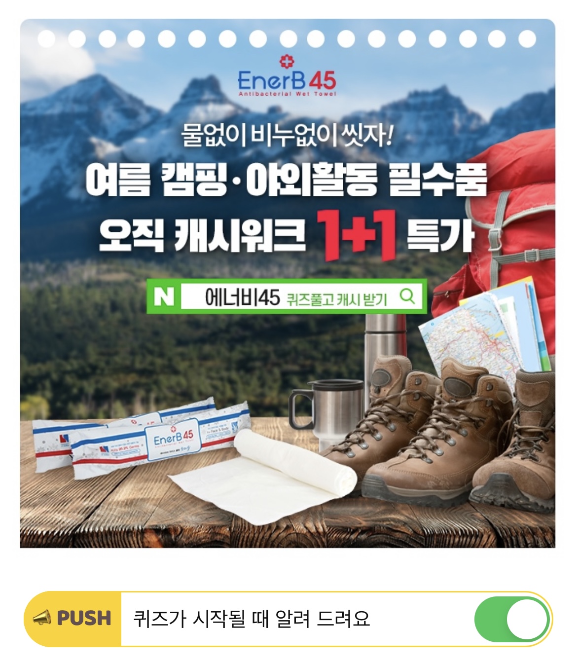 퀴즈풀고 캐시도 같이 적립해봐요.