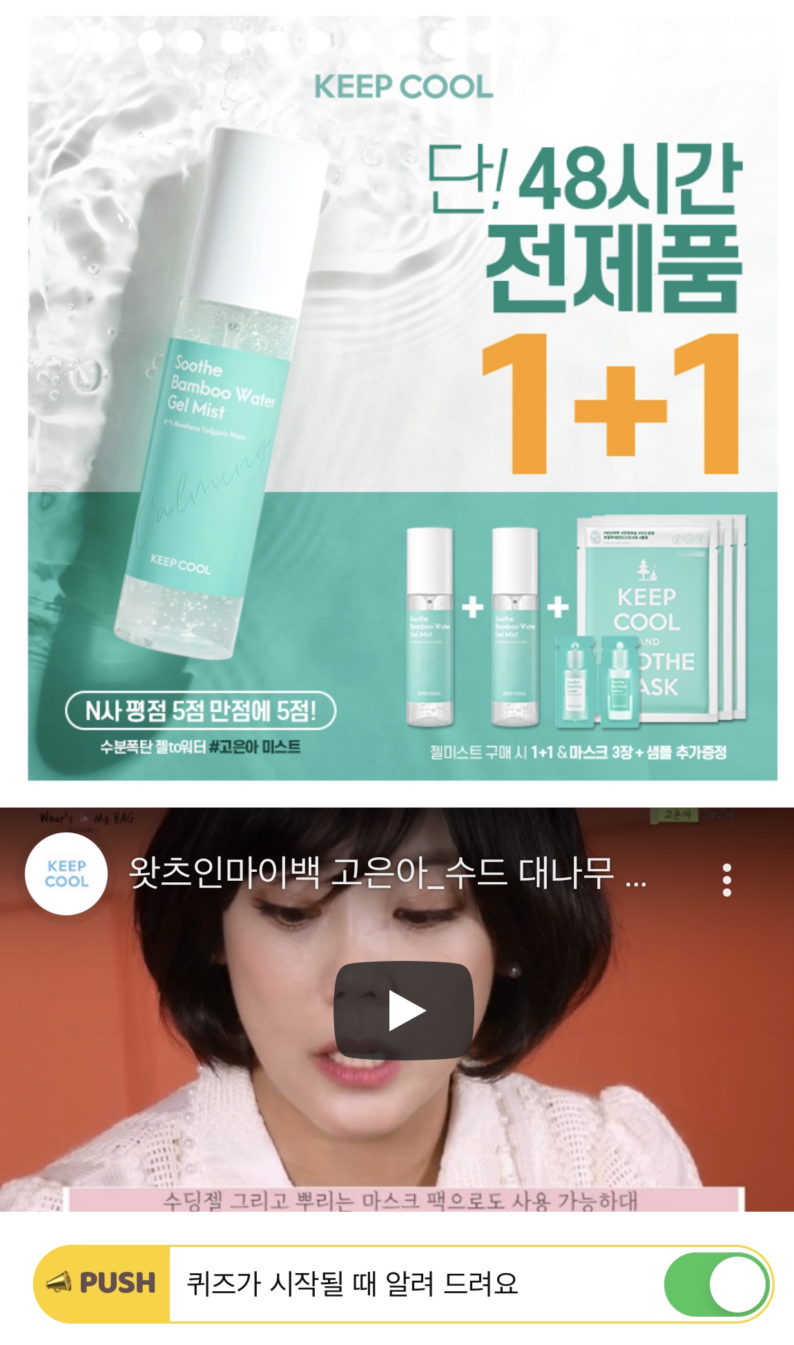 왓츠인마이백에서 고은아가 사용한 대나무 미스트는 젤이 워터로 변하는 신기한 제형으로 데일리 미스트는 물론 가까이서 분사하면 나오는 도톰한 OOO로 도포하여 햇빛에 자극받은 피부를 진정시켜 줍니다. 여기서, 여름에 자주 사용하는 OOO은 무엇일까요?