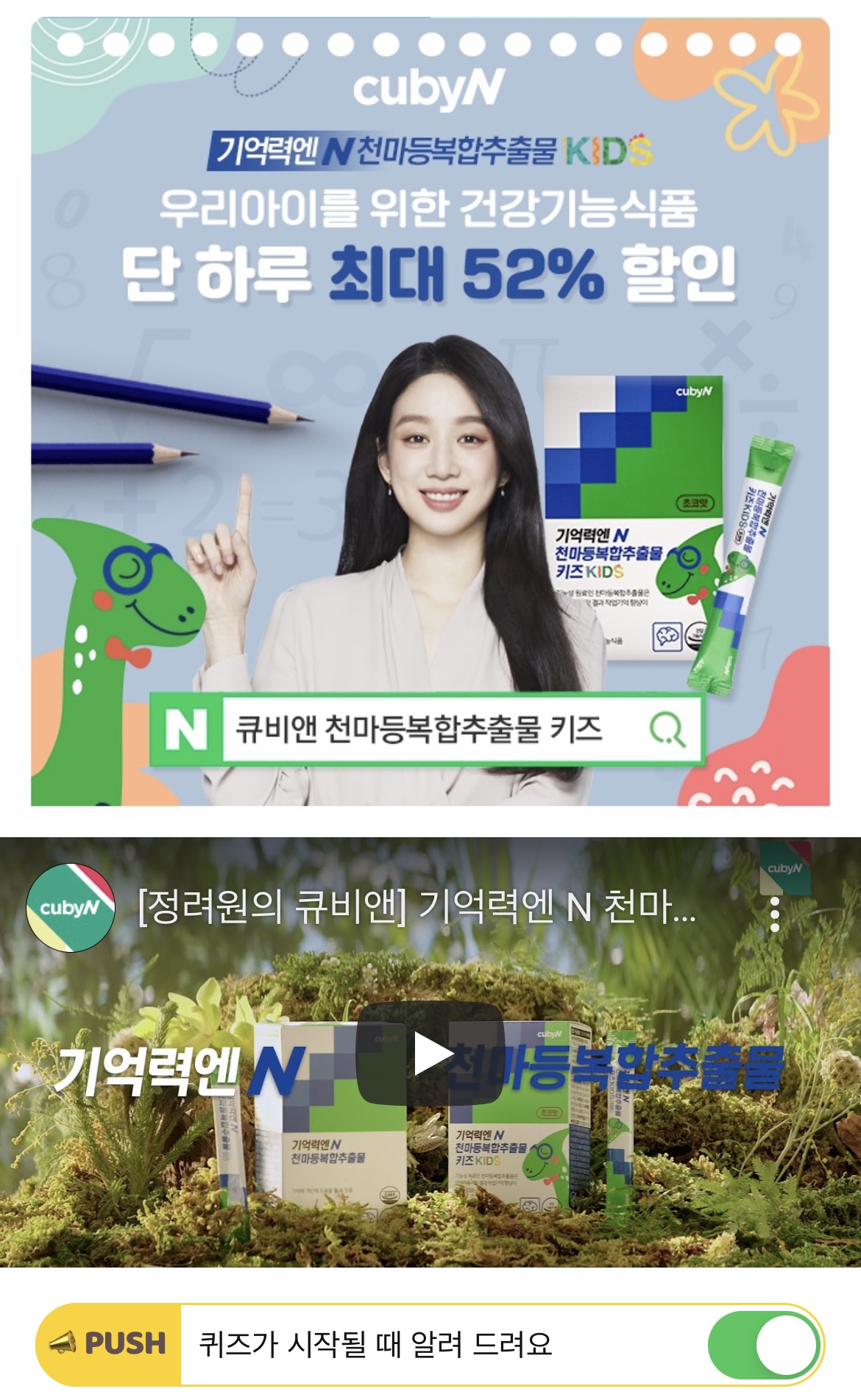 식약처 인정 기억력개선 개별인정형 원료 천마등복합출물키즈는 기억력이 필요할 때, OOOO이 왕성한 시기에 필요한 영양제 입니다. OOOO은 무엇일까요? (초성힌트 : ㄷㄴㅎㄷ)