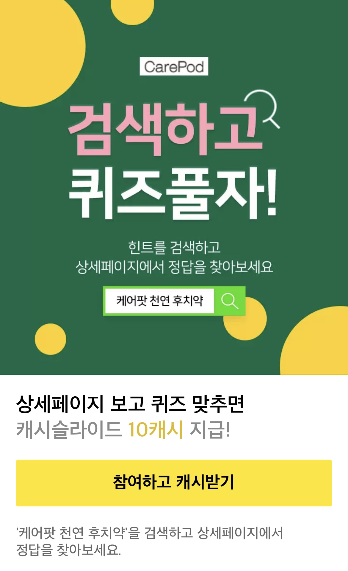 '케어팟 천연 후치약'을 검색하고 상세페이지에서 정답을 찾아보세요