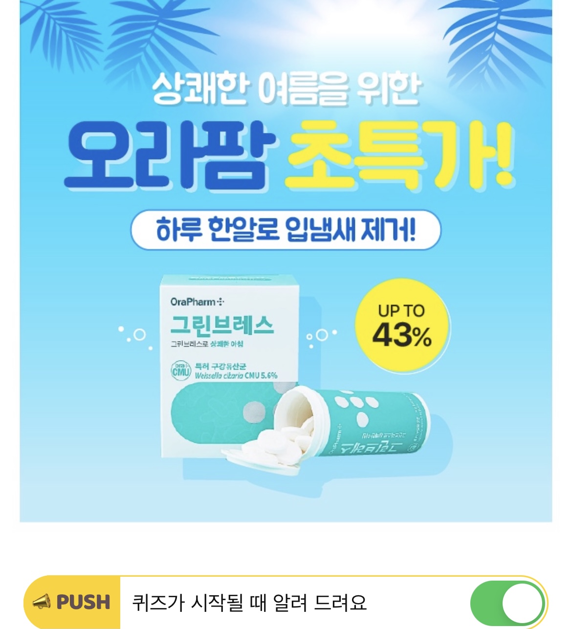 덥고 습한 여름에도 착용해야 하는 마스크, 입냄새까지 난다면 불쾌지수 폭발! 입냄새의 근본 원인을 해결하는 진짜 입냄새 해결템으로 주목받고 있다. OOOOOO에 들어갈 단어는 무엇일까요?