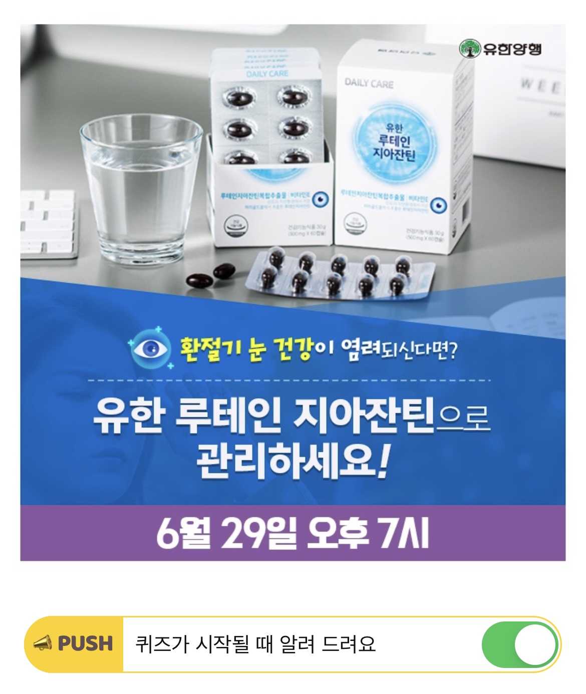 유한 루테인지아잔틴으로 OOOO OOO 지켜요!! 빈칸에 들어갈 단어는 무엇일까요? (초성힌트: ㅇㄹㄱㅈㄴㄱㄱ)