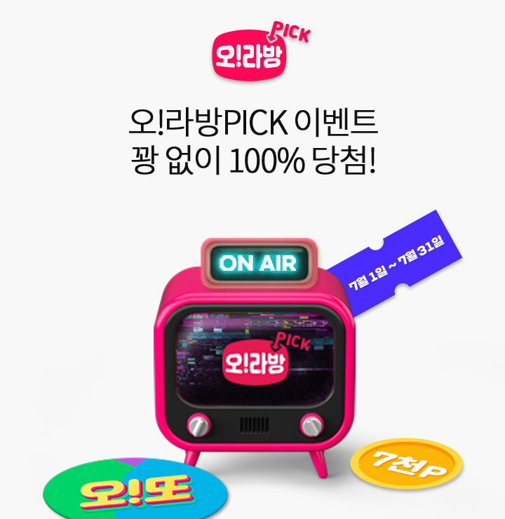 문제 : 7월 한 달 동안 오!라방PICK 시청 이벤트가 진행됩니다.