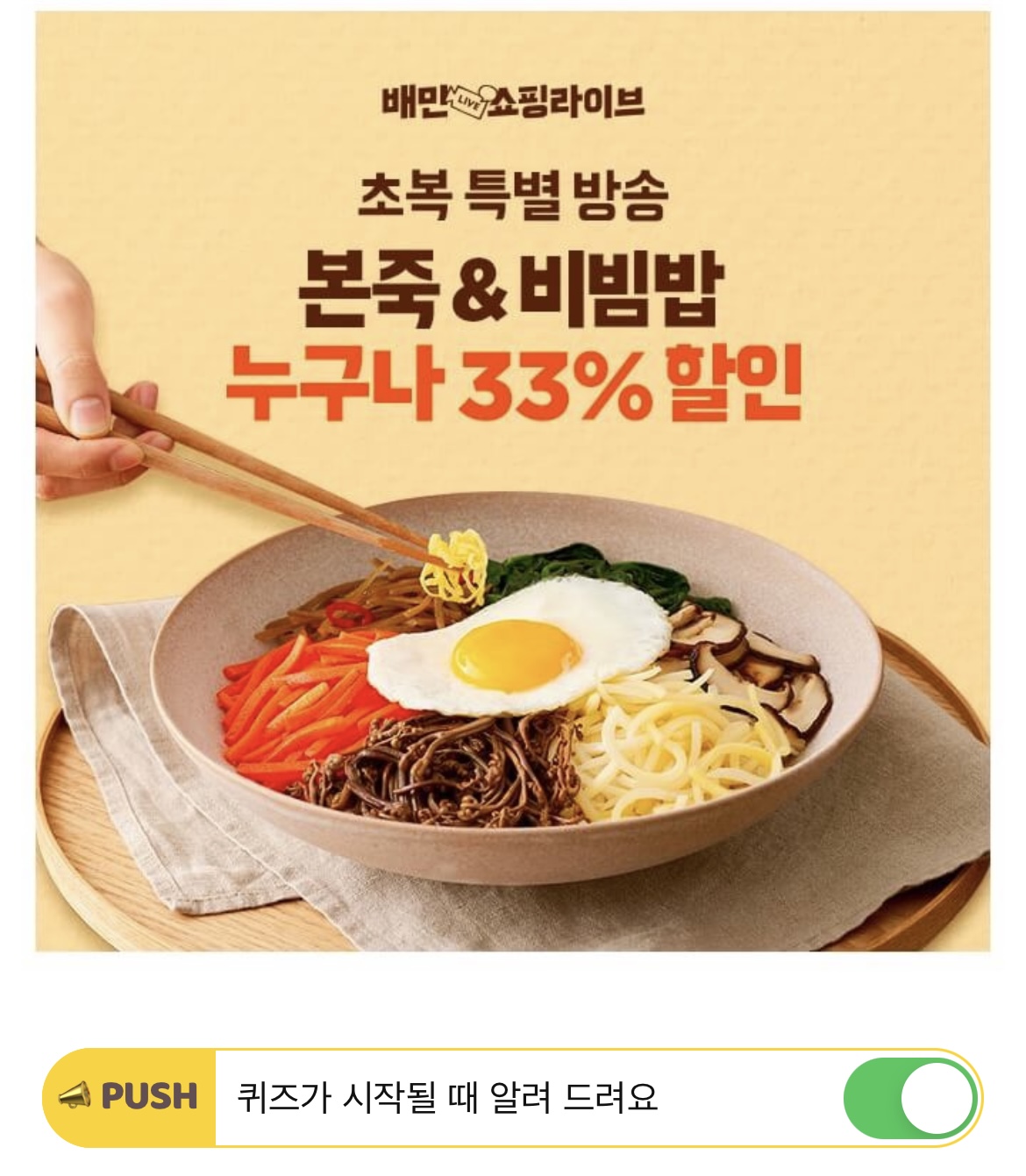 본죽이 초복을 기념하여 배민쇼핑라이브에서 최대 OOO할인을 하는데요! 과연 OOO은 얼마일까요?
