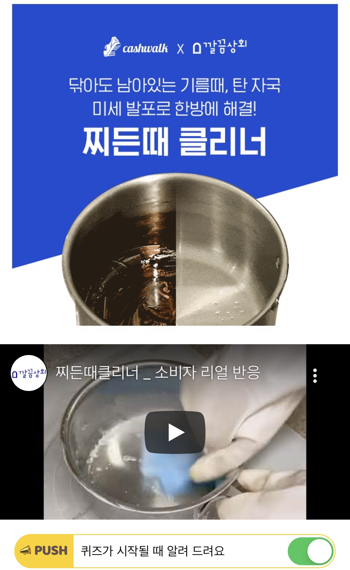 깔끔상회 NEW 찌든때 클리너는 기름때와 탄 자국 완벽제거는 물론, 미세 발포 입자로 연마제 제거, 텀블러와 식기류 OOOO, 유해 성분 배제한 안전한 성분까지! 4가지 장점을 가지고 있는 기특한 제품입니다. OOOO에 들어갈 단어는 무엇일까요? (초성힌트 : ㄱㄹㅅㅈ)