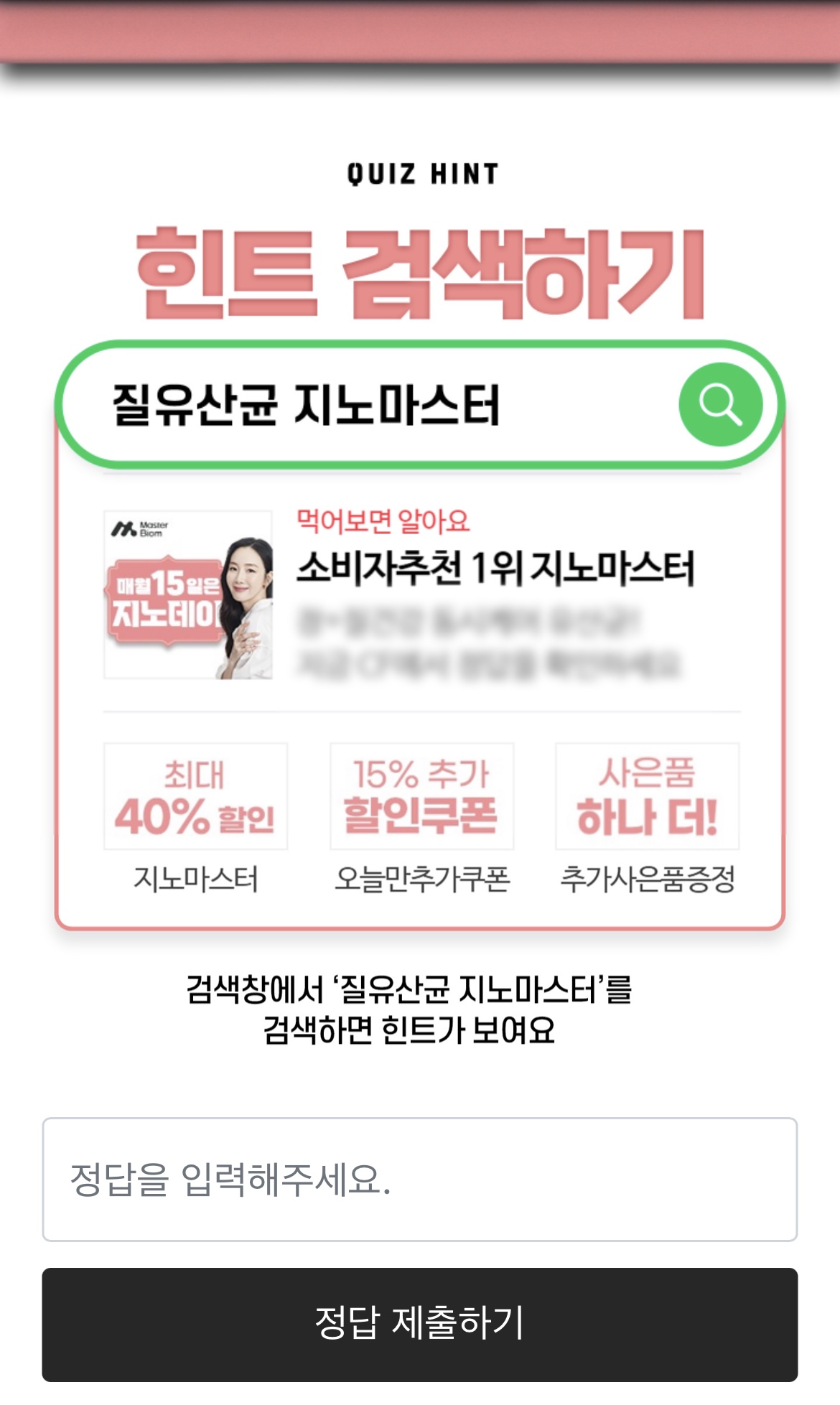 검색창에거 ‘질유산균 지노마스터’을 검색하면 힌트가 보여요