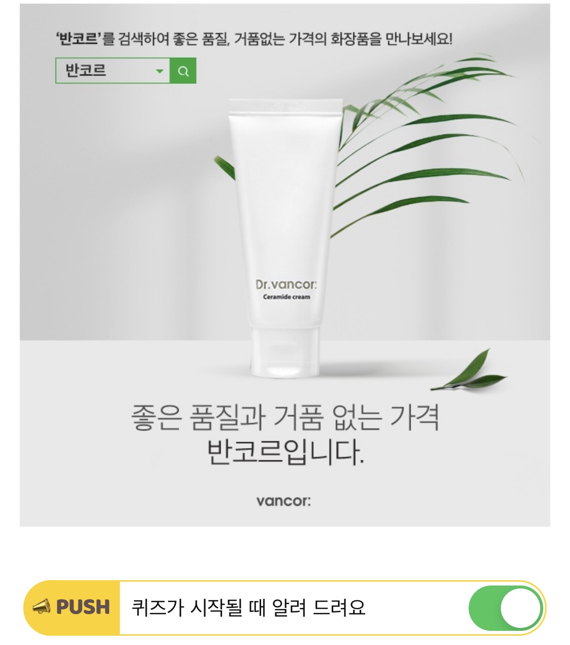 좋은 품질과 거품없는 가격 '반코르' 공식 홈페이지에는 반코르의 철학이 명시되어 있습니다. <살아남고 싶다>의 'OOOO 화장품, 좋은 성분과 거품없는 가격' 문구 중 OOOO은 무엇일까요? (힌트 : ㅎㄹㅈㅇ)