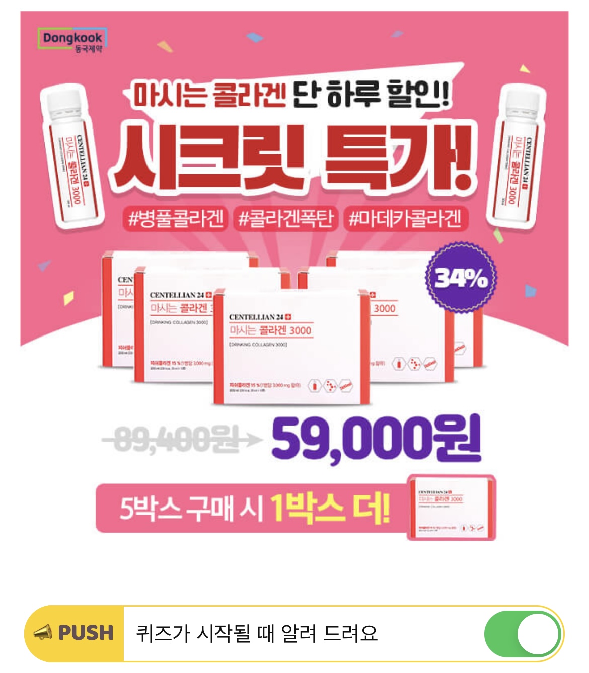 동국제약 마시는 콜라겐 3000은 피쉬 콜라겐 특유의 비린맛 없이 상큼하고 깔끔한 OOOO맛 입니다. OOOO에 들어갈 내용은 무엇일까요 ?