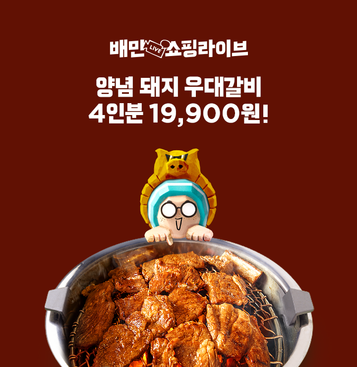 문제 : 국내 최초! 양념 돼지 우대갈비가 배민쇼핑라이브에 찾아왔어요!