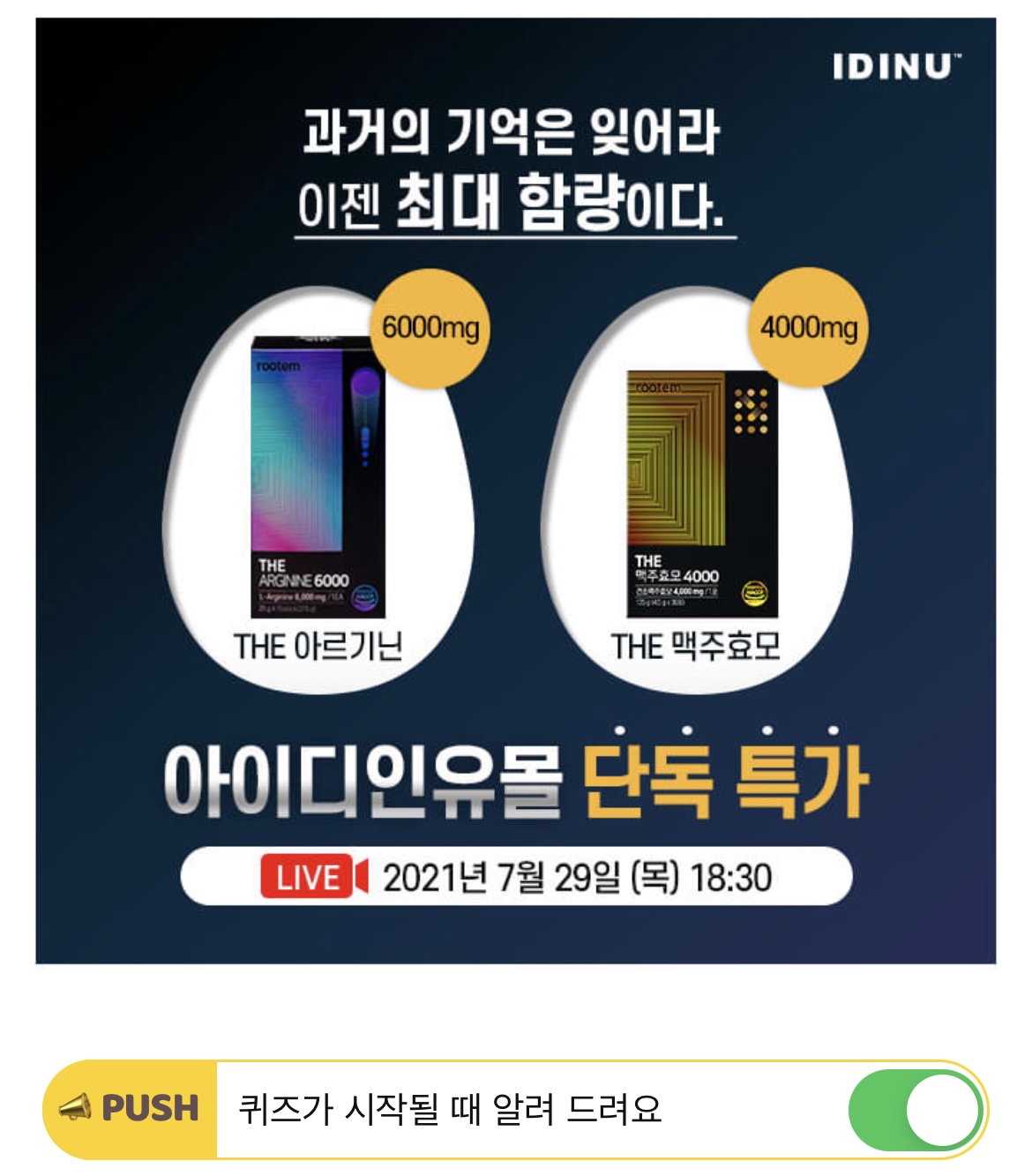 ‘나다움’을 추구하는 건강한 공간이라는 슬로건과 함께 내 몸에 딱맞는 ID를 찾아주는 온라인 공식 스토어 아이디인유! OOOO 제품 2종!