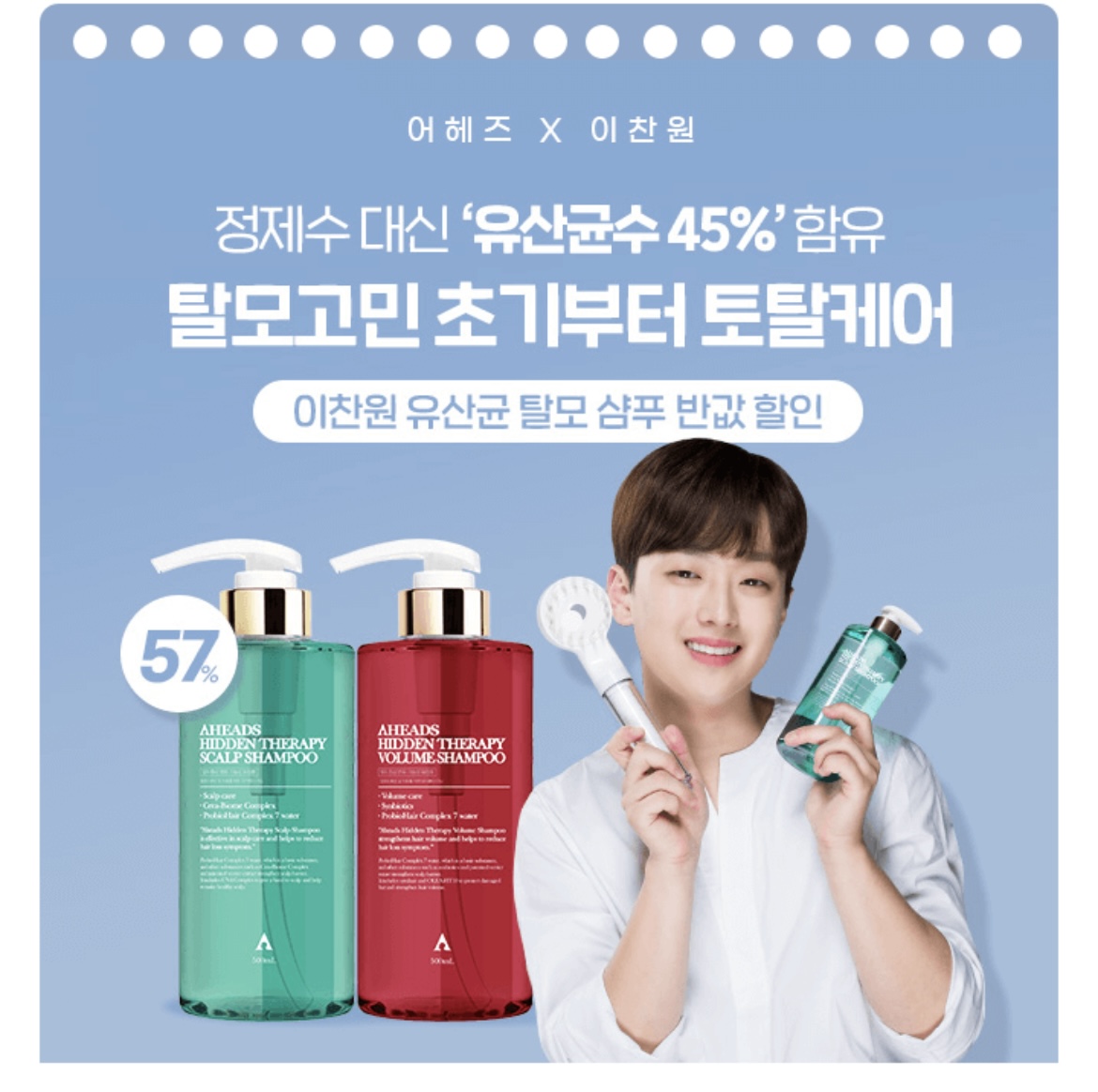 이찬원 유산균 탈모샴푸는 특허받은 배리어 추출물과 5가지 프로바이오틱스 성분이 함유된 OO OO OO기능성 샴푸 입니다. 여기서, OOOOOO에 들어갈 단어는 무엇일까요? (초성힌트 : ㅌㅁㅈㅅㅇㅎ)