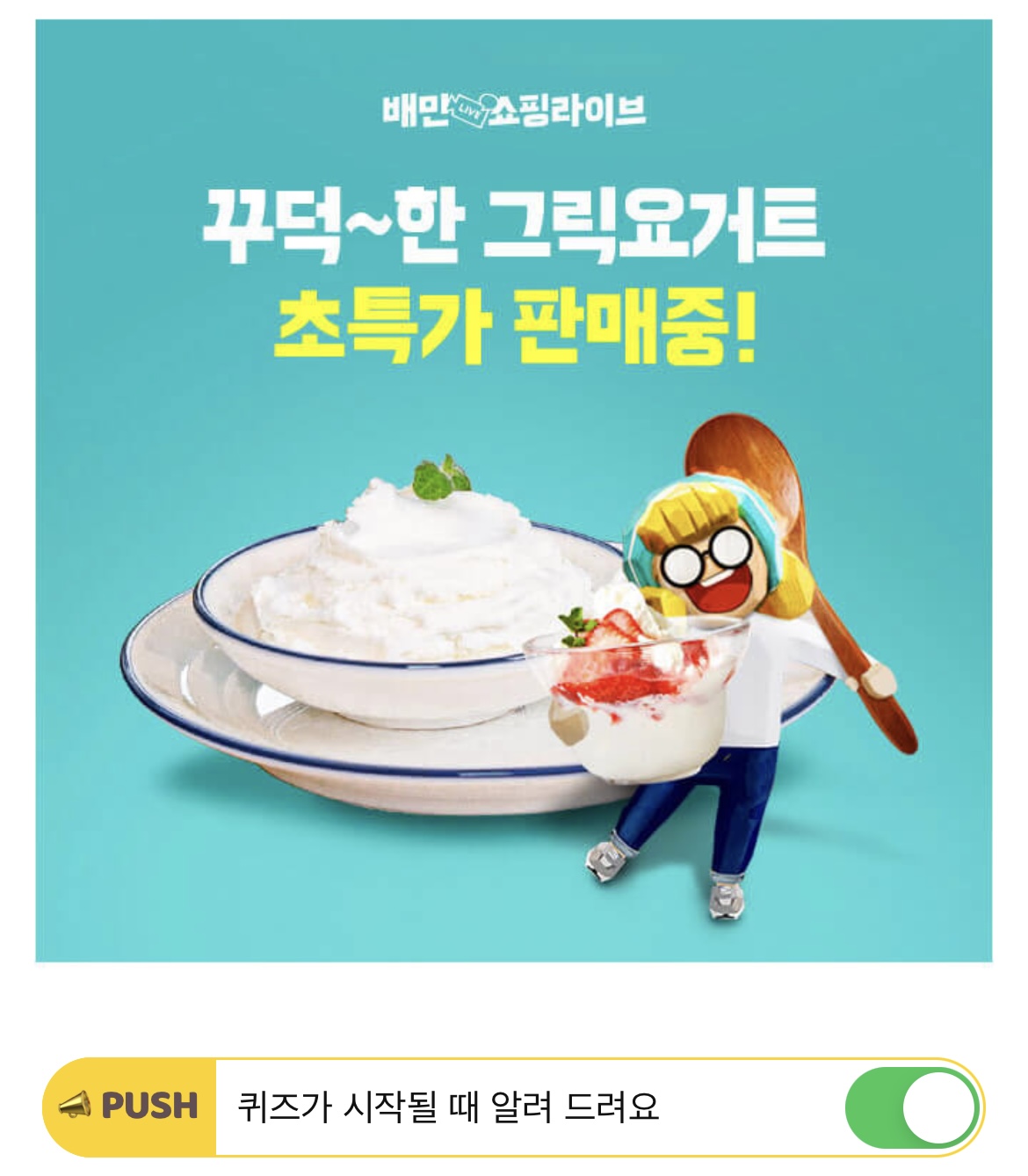 한국인의 입맛에 딱 맞는 OO 그릭요거트! 배민쇼핑라이브에서 OO그릭요거트를 초특가로 판매합니다! 그릭요거트의 브랜드 OO은 무엇일까요?
