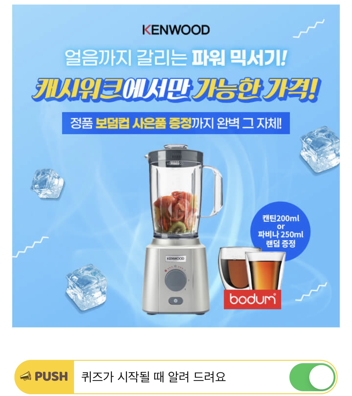 빙수도 이젠 집에서! 켄우드 다용도 믹서기는 조작 다이얼 하단의 OO OO OO을 이용하여 얼음을 쉽고 빠르게 분쇄할 수 있습니다. 빈칸에 들어갈 단어는 무엇일까요? (힌트 : ㅇㅇㅂㅅㅂㅌ)
