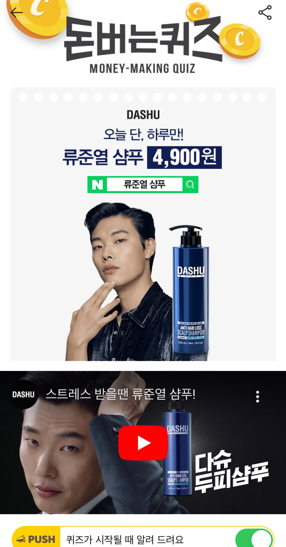 퀴즈풀고 캐시도 같이 적립해봐요.