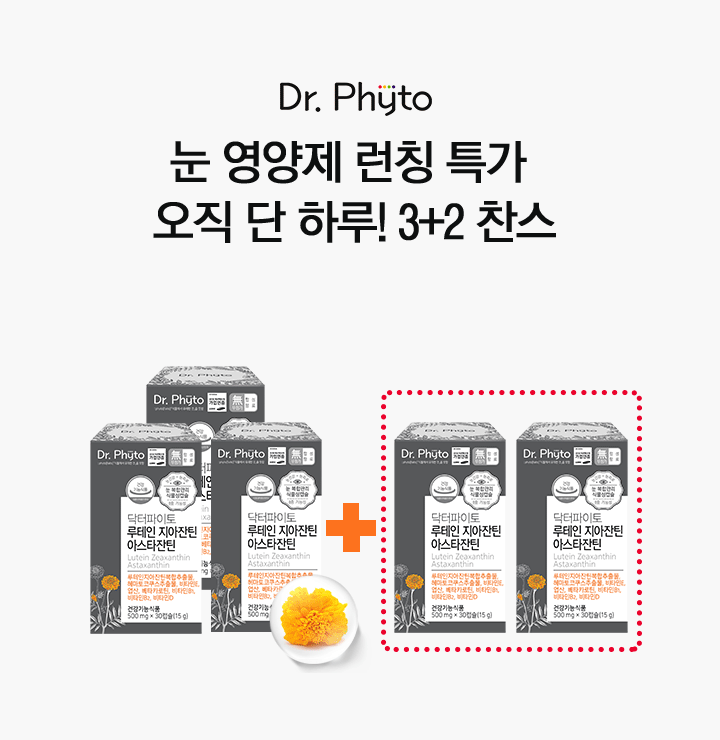 눈 영양제 3+2 행사와 함께 ○○○○○과 닥터파이토 식물성 알티지 오메가3를 한정수량으로 1천원에 구매할 수 있는 게릴라 이벤트를 진행 중입니다.
