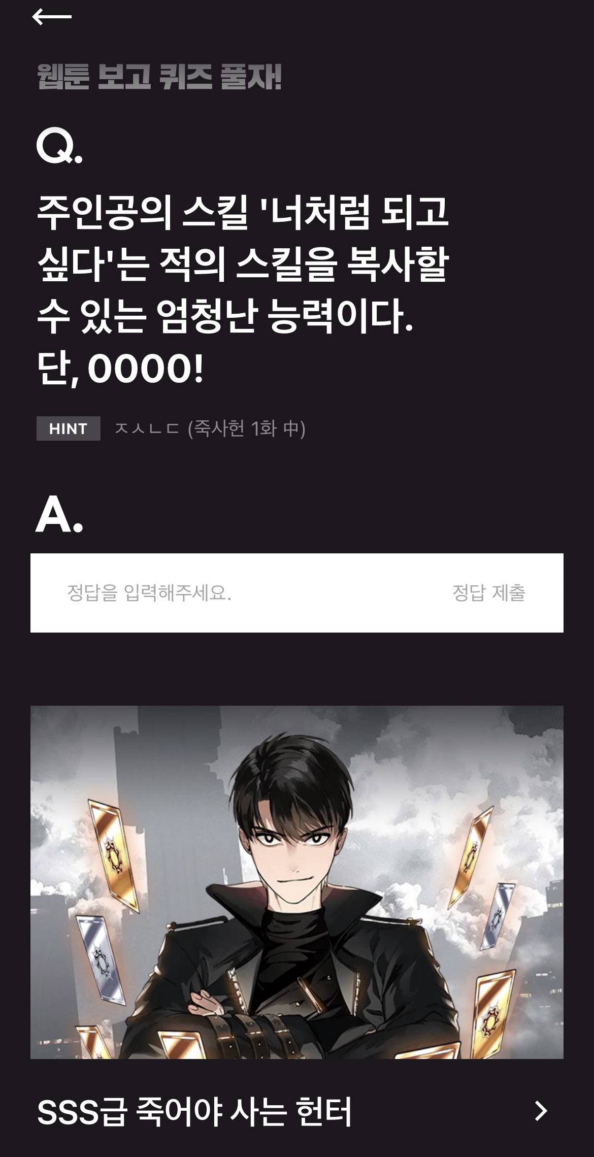 힌트 : ㅈㅅㄴㄷ (죽사헌 1화 중)