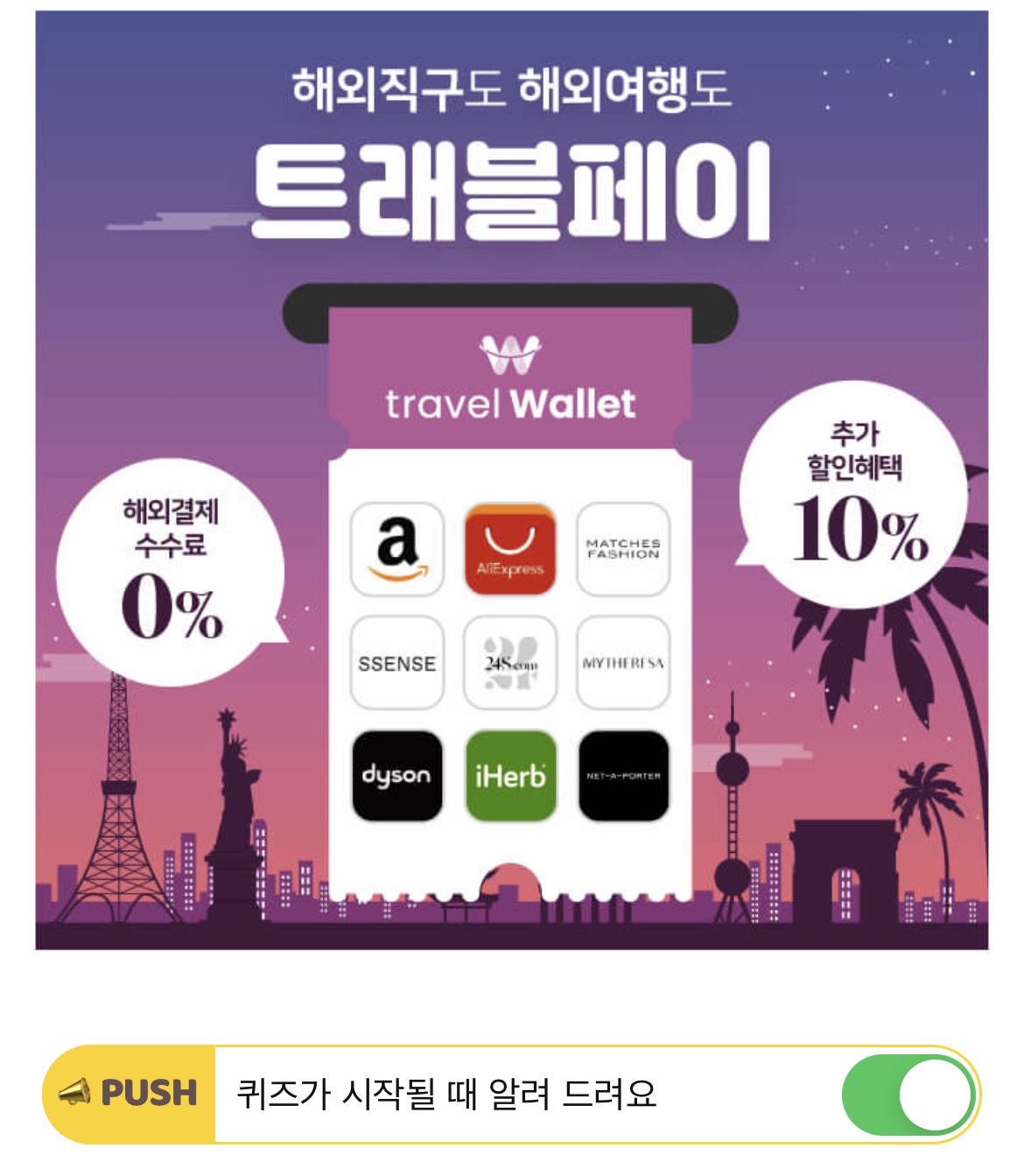 해외직구로 해외여행 가자! 간편한 결제, OOOOO. 여기서, OOOO에 들어갈 단어는 무엇일까요?
