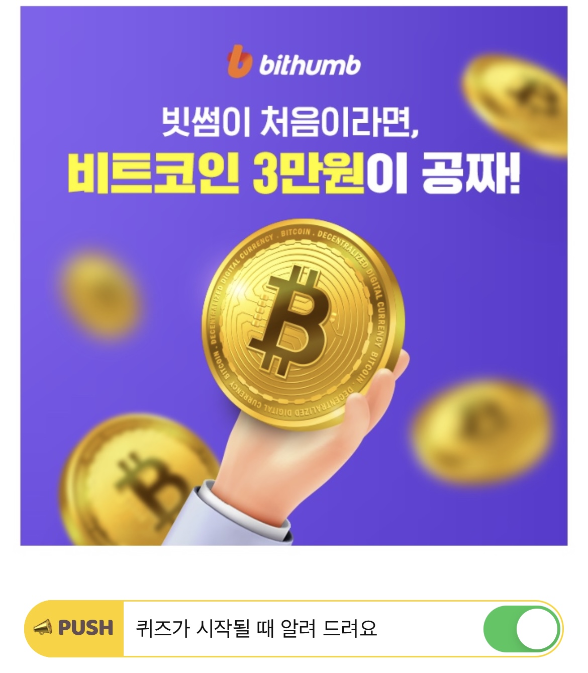 빗썸은 첫 계좌 등록하고, 첫 입금 후 거래까지 하면 OOOO 3만원 100% 드려요!