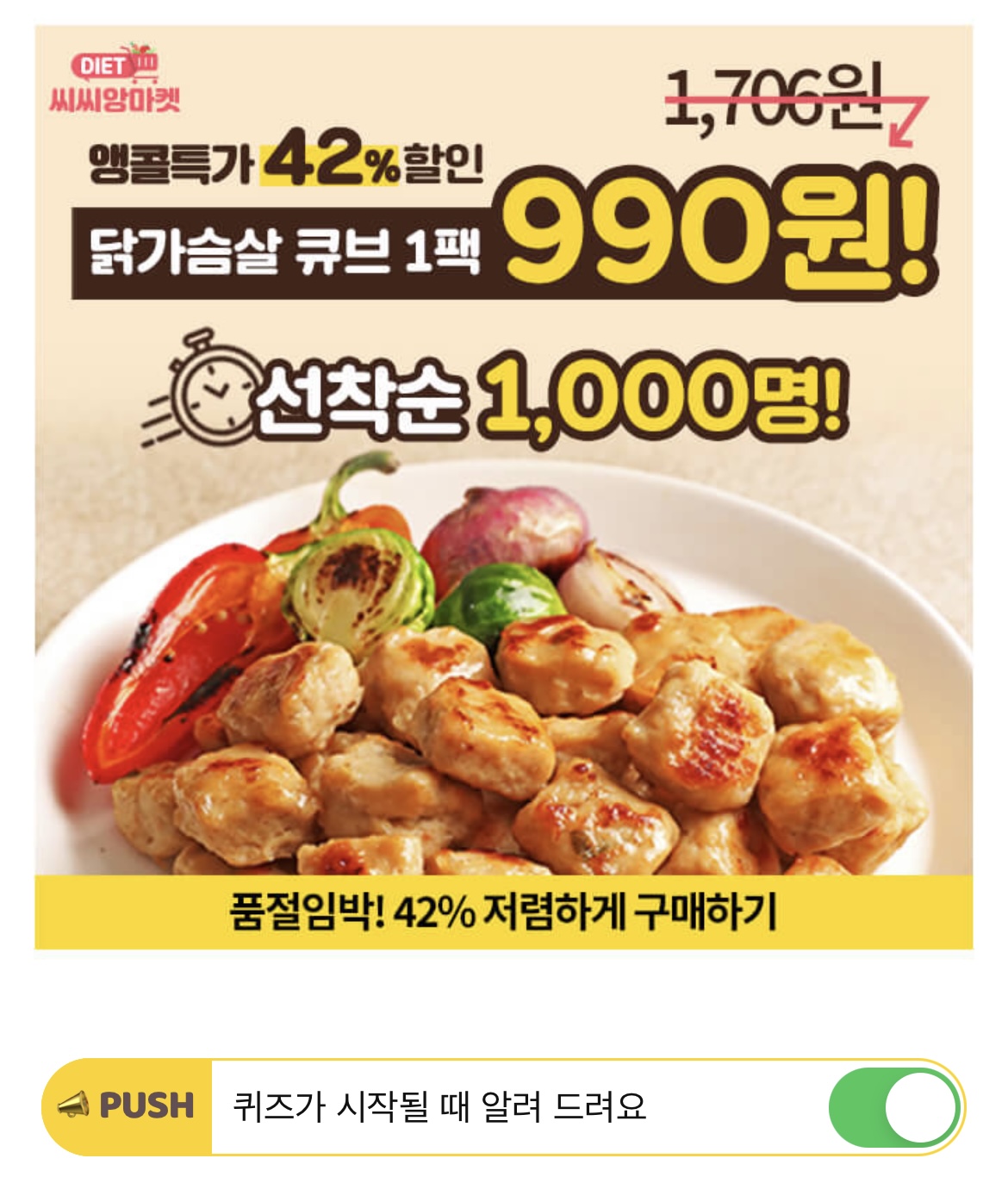 씨씨닭 고객 찐 후기 : "타제품 큐브보다 더 'OO'하다고 해야 될까요? 다이어트 중이라 그런지 샐러드랑 먹을 시 배불러서 세 알 남겨 먹어요. " 빈칸에 들어갈 단어는 무엇일까요? (힌트 : ㅉㄱ)
