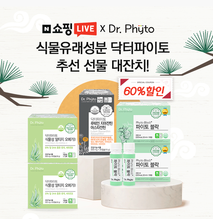 문제 : 지금 쇼핑라이브 내 추석 선물 특가 및 게릴라이벤트를 진행 중인 닥터파이토는 식물유래 성분을 바탕으로 안전하고 검증된 기능성 제품을 만드는 브랜드입니다.