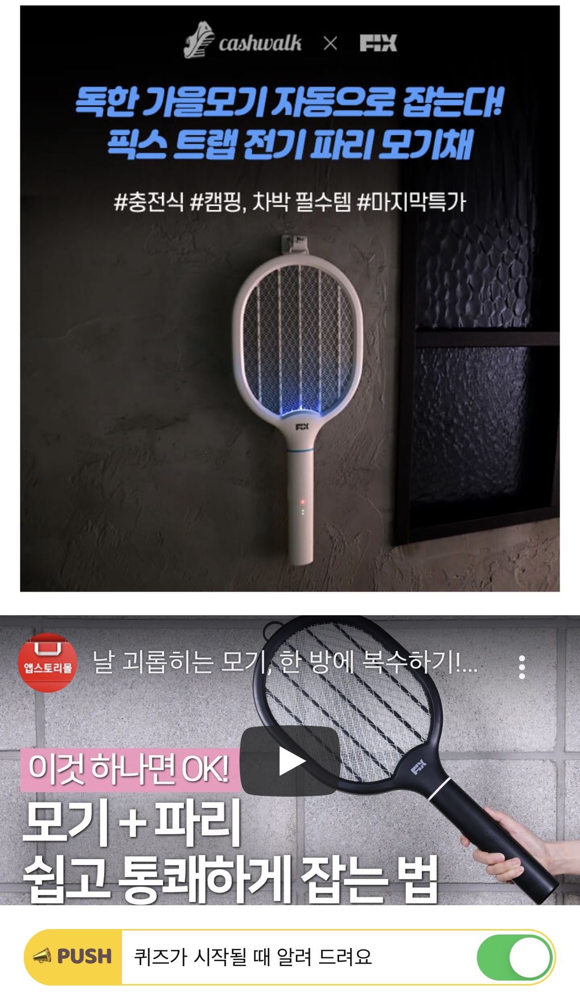퀴즈풀고 캐시도 같이 적립해봐요.