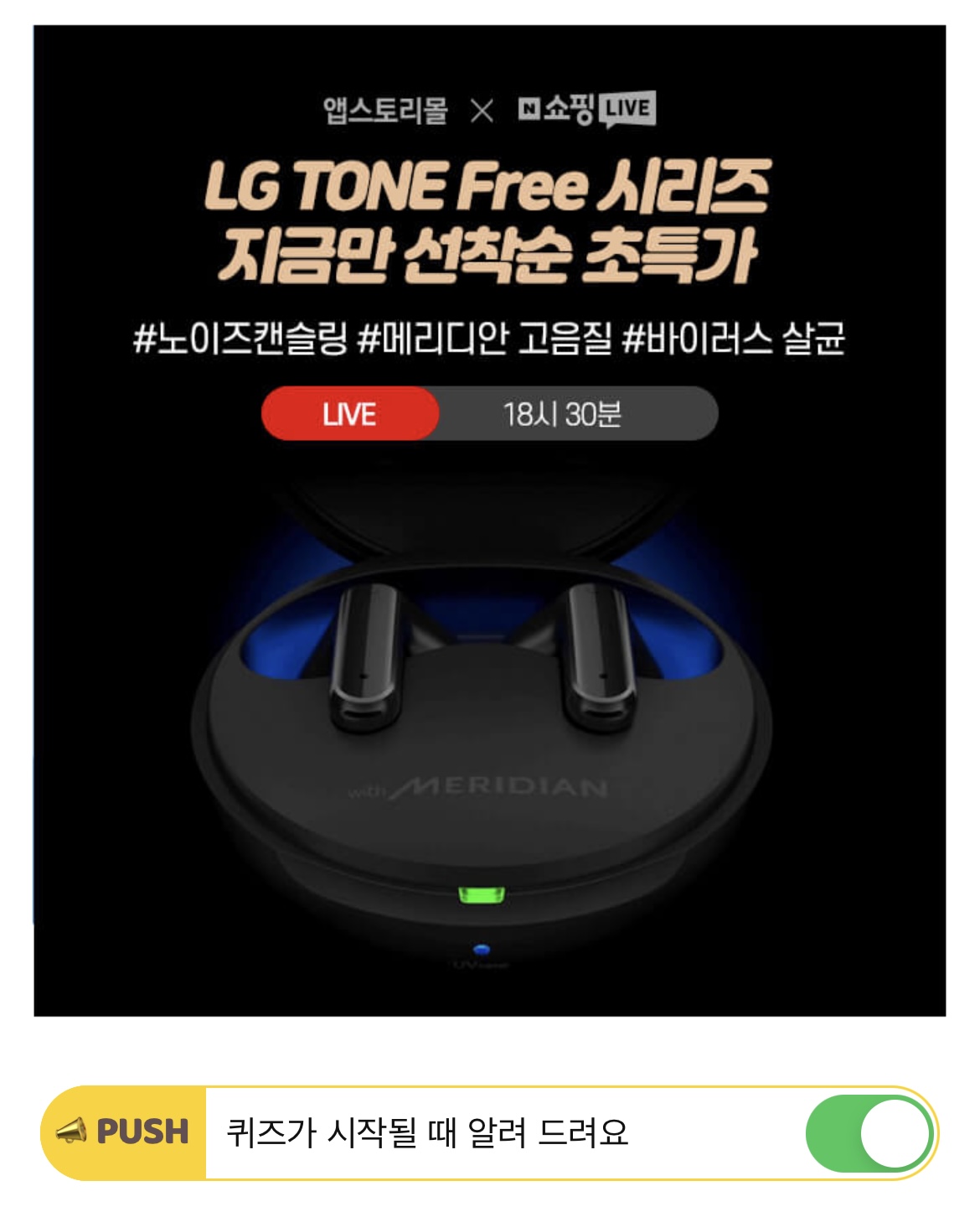 LG 톤프리 블루투스 이어폰은 몰입감 높은 노이즈 캔슬링&OOOO 고음질 사운드를 제공할 뿐만 아니라, UV 특수 살균 기능을 탑재해 위생까지 책임집니다. 오늘만 앱스토리몰에서 제공하는 이벤트와 국내 최저가 네이버 쇼핑 라이브 한정 특가를 놓치지 마세요.