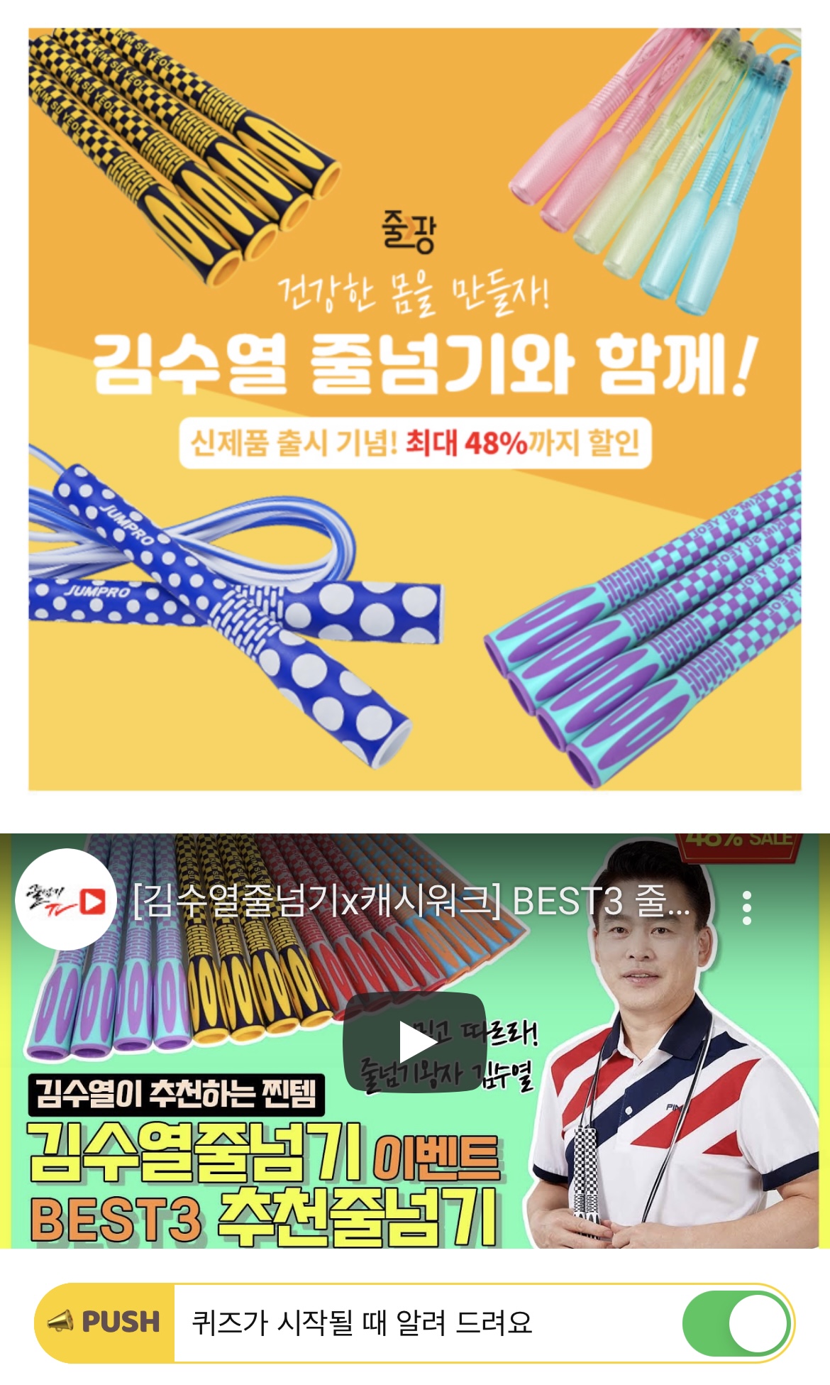 김수열줄넘기 중 가장 많이 사랑받는 명품줄넘기를 업그레이드 시킨 OOOOO. 수천번의 테스트 끝에 만들어진 이 줄넘기는 무엇일까요? (초성힌트 : ㅅㅍㅅㅁㅍ)