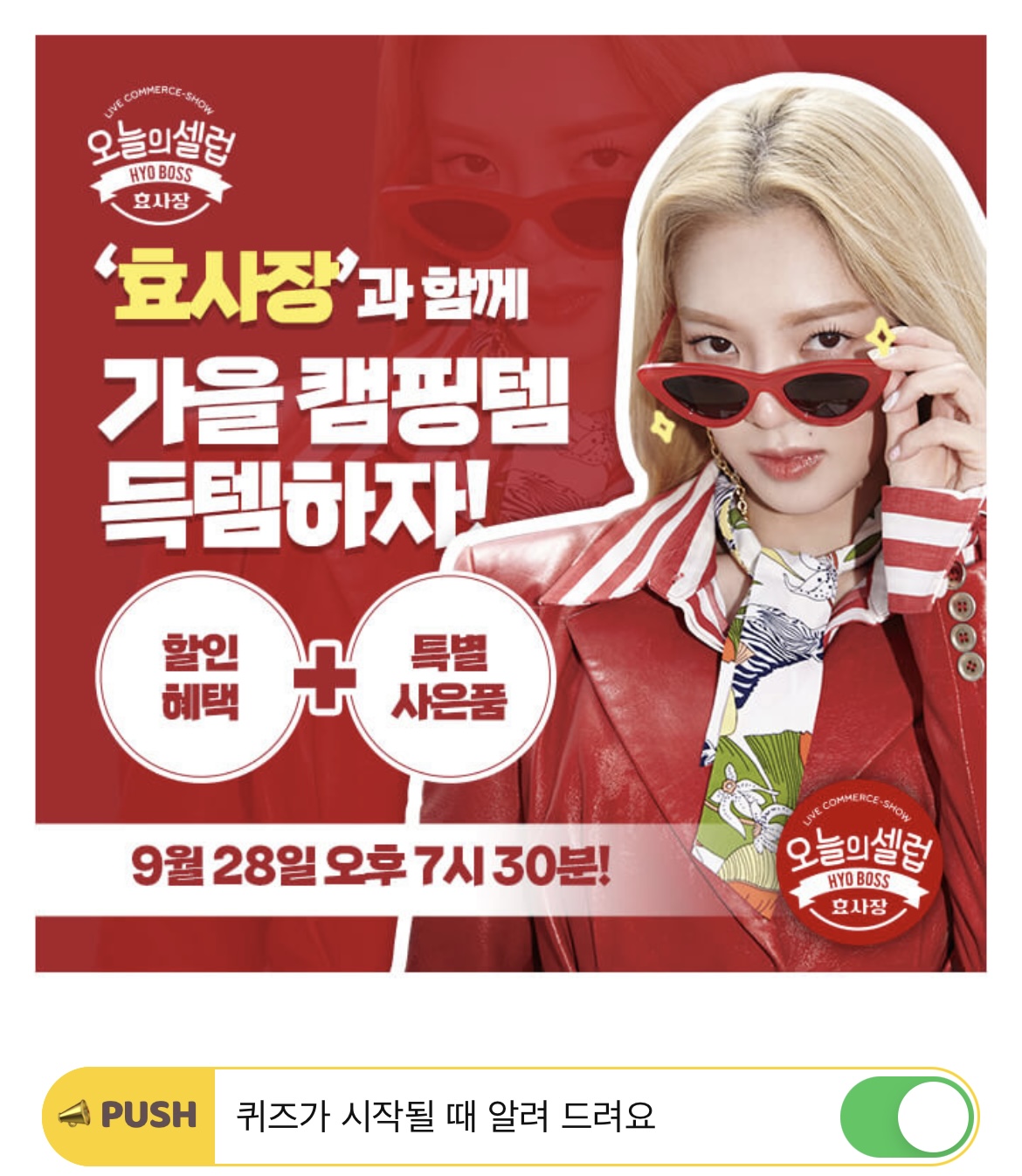 <오늘의셀럽-효사장>에서 라이브 방송 중 30분마다 추첨을 통해 선물을 주는 OOO이벤트를 진행합니다.