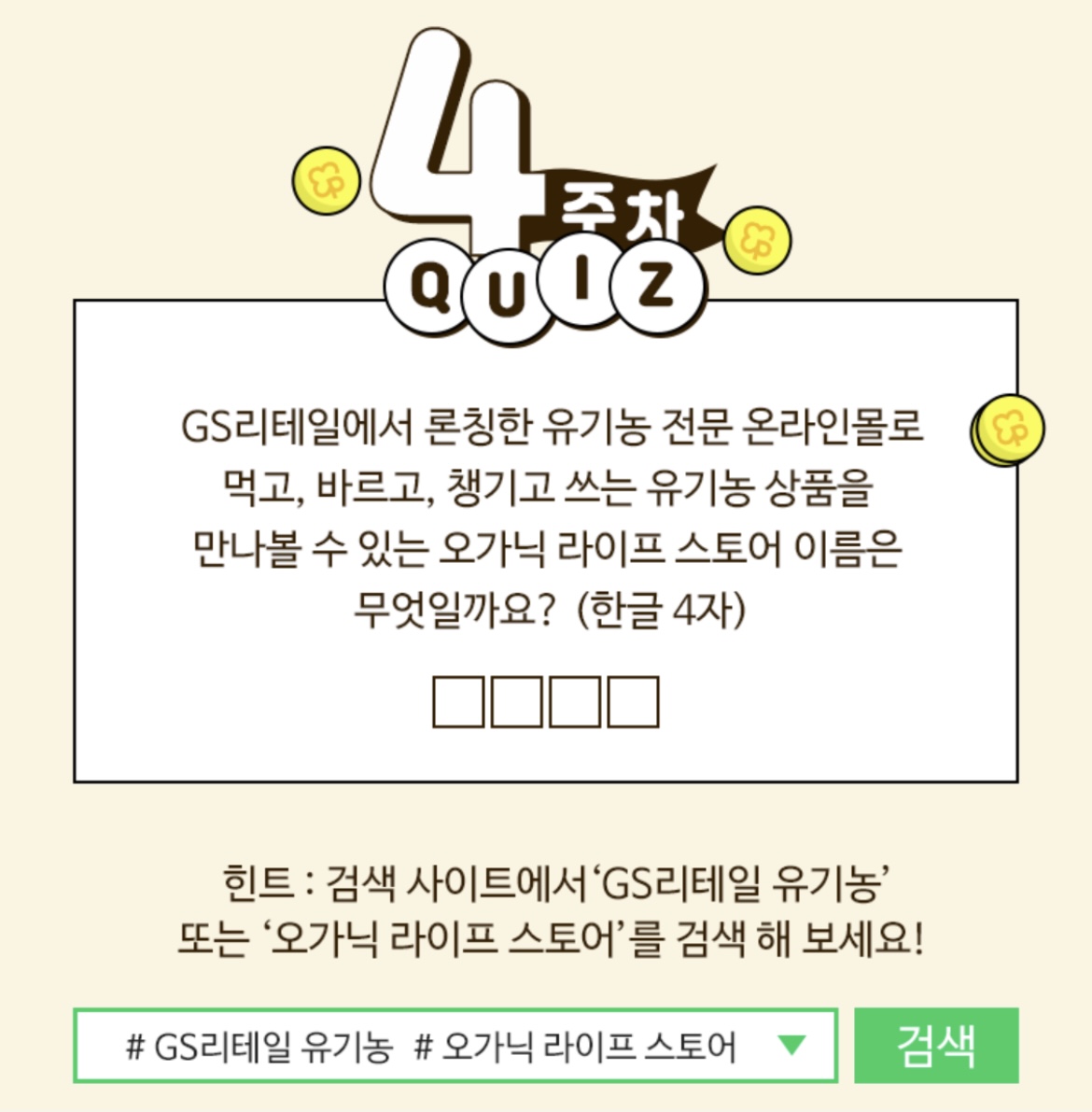 힌트 : 검색 사이트에서 'GS리테일 유기농' 또는 '오가닉 라이프 스토어'를 검색 해 보세요