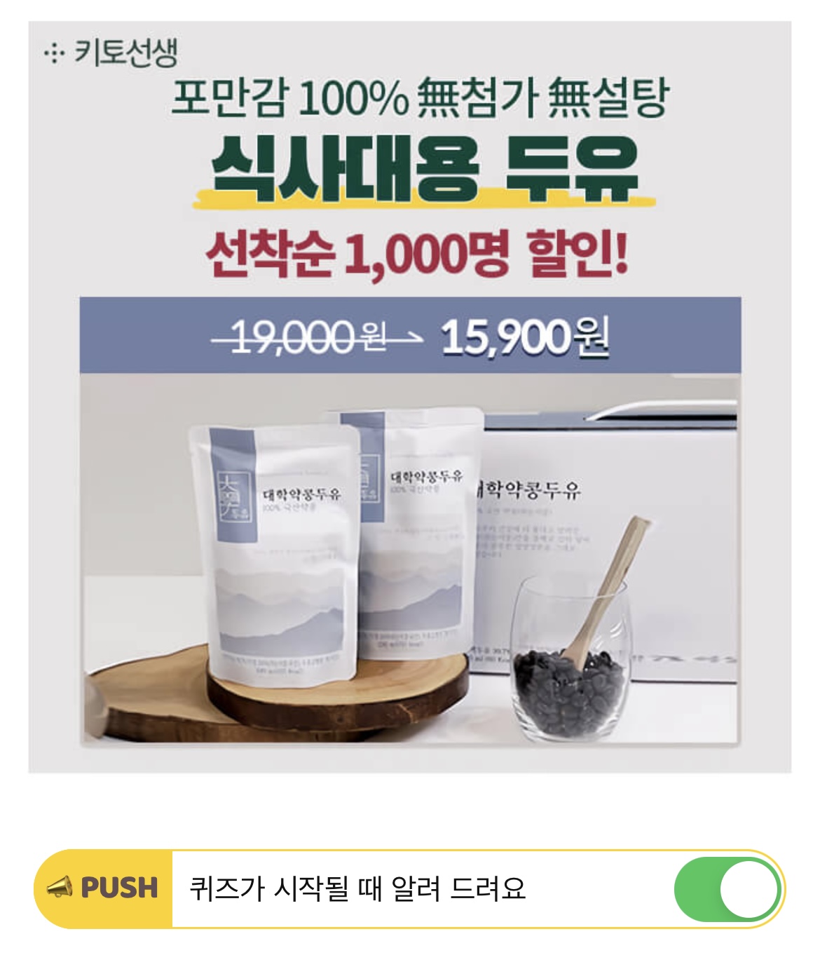 "당뇨가 있으신 어머니께서 달지도 않고 속도 든든해서 너무 좋다고 하시네요." 이 후기는 대두를 사용하지 않고 100% 국내산 'OO'만을 사용한 대학약콩두유 구매자의 실제 후기 입니다. 빈칸에 들어갈 단어는 무엇일까요?(힌트: ㅇㅋ)