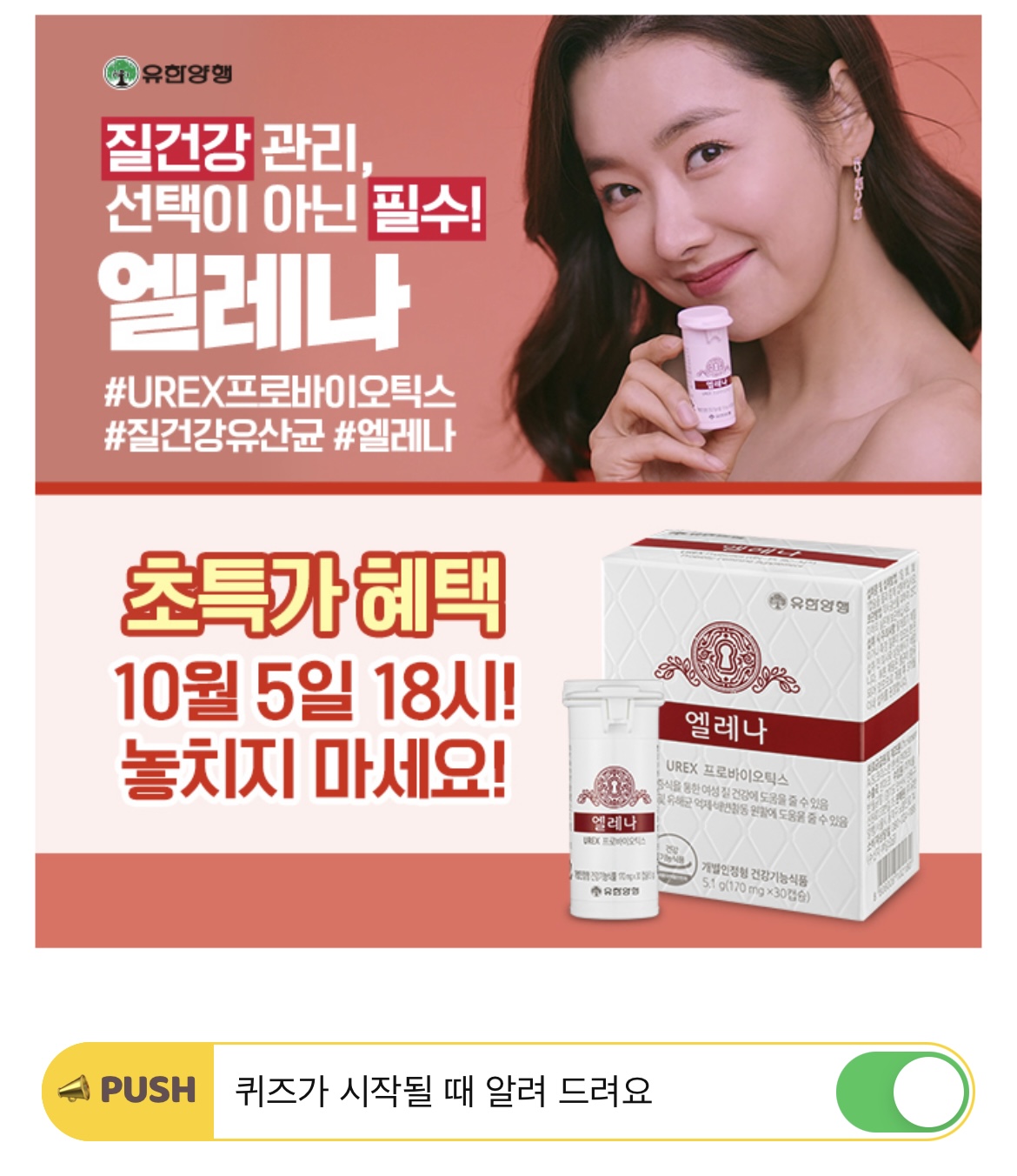 이제는 선택이 아닌 필수인 질 건강 관리를 위해, 유한양행 엘레나는 여성의 O OO까지 케어하는 프리미엄 멀티 유산균입니다. OOO에 들어갈 단어는 무엇일까요?